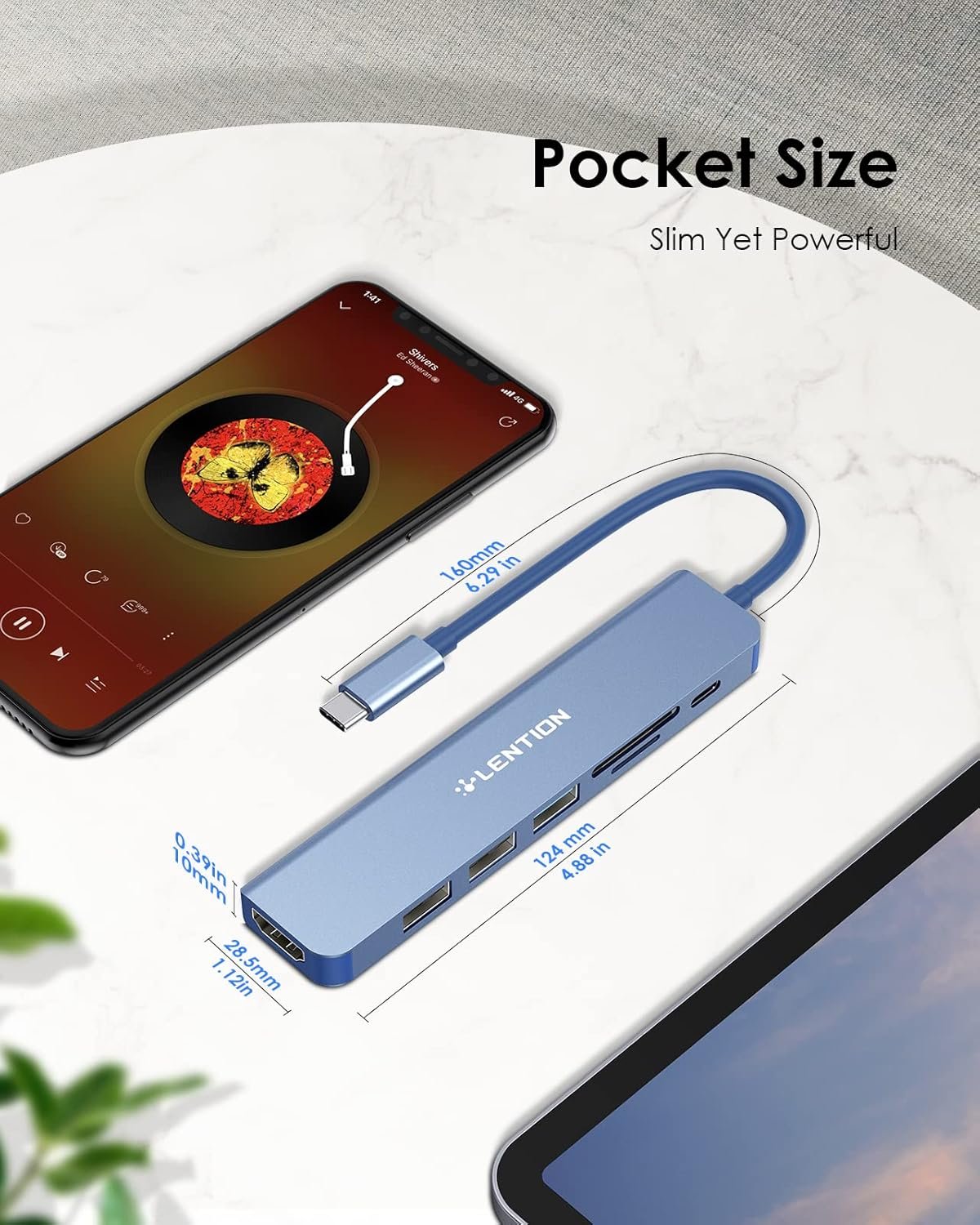 LENTION Hub USB C carregamento de 100 W, HDMI 4K, Dual Leitor de Cartão, Compatível USB 3.0 e 2.0 2023-2016 MacBook Pro, novo Mac Air/Surface, Chromebook, adaptador de driver estável (CB-CE18, Azul)