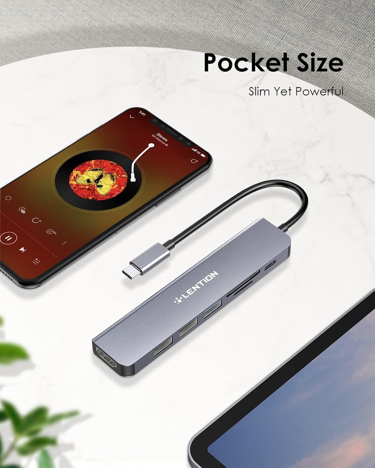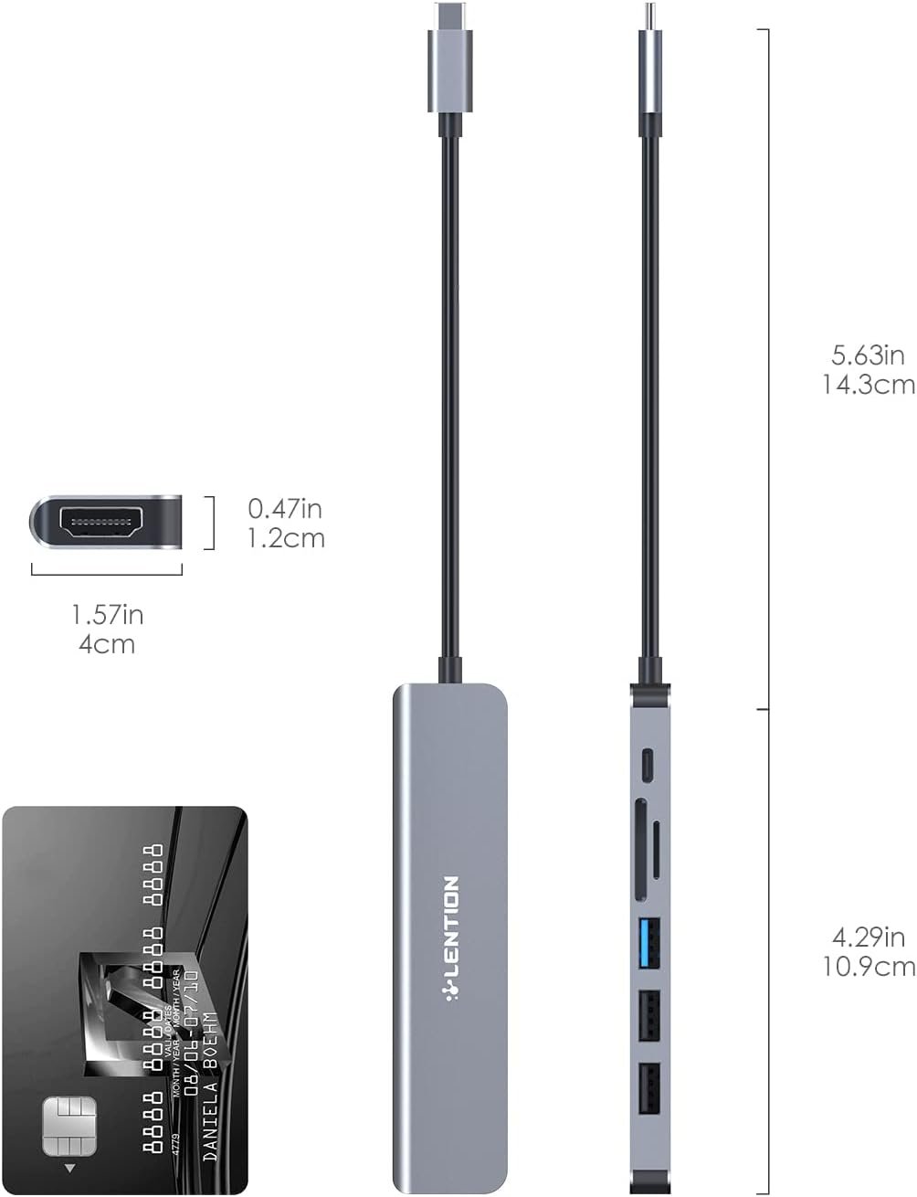 LENTION Hub USB C carregamento de 100 W, HDMI 4K, Dual Leitor de Cartão, Compatível USB 3.0 e 2.0 2023-2016 MacBook Pro, novo Mac Air/Surface, Chromebook, adaptador de driver estável (CB-CE18, Cinza)