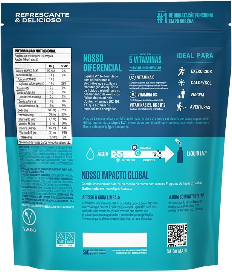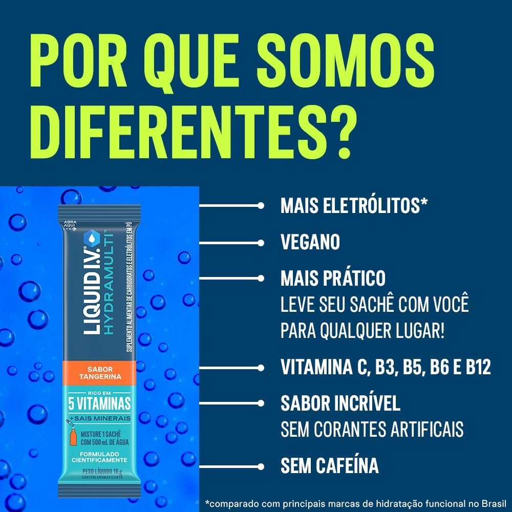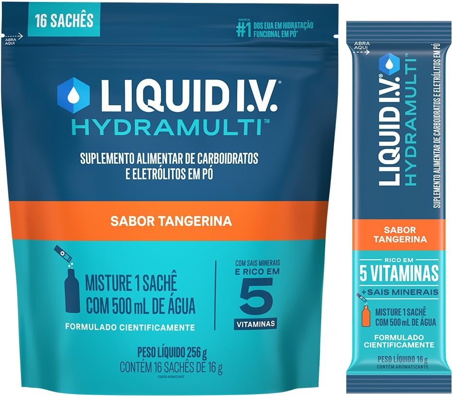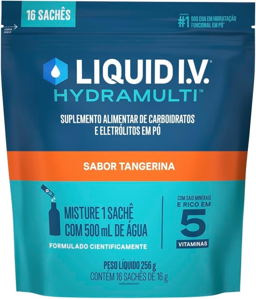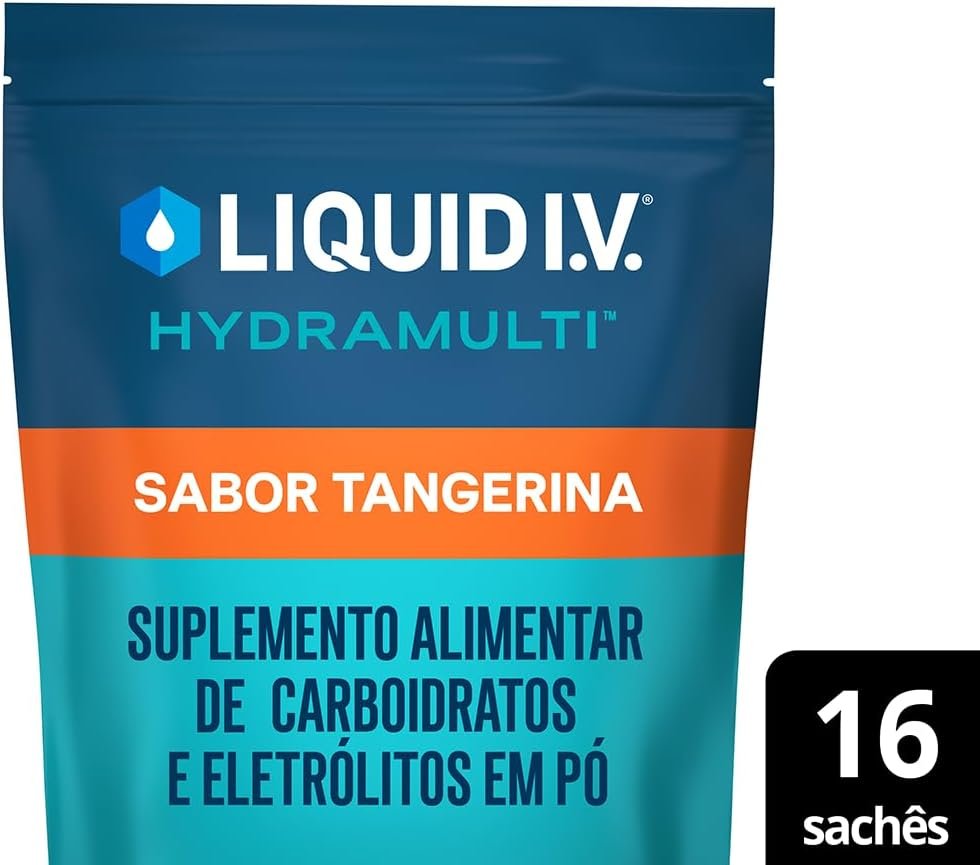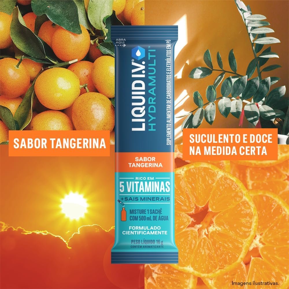 Liquid IV Hydramulti, Mistura de Eletrólitos em Pó Para Hidratação Rápida, 16 Sachês de 16g Cada, Sabor Tangerina