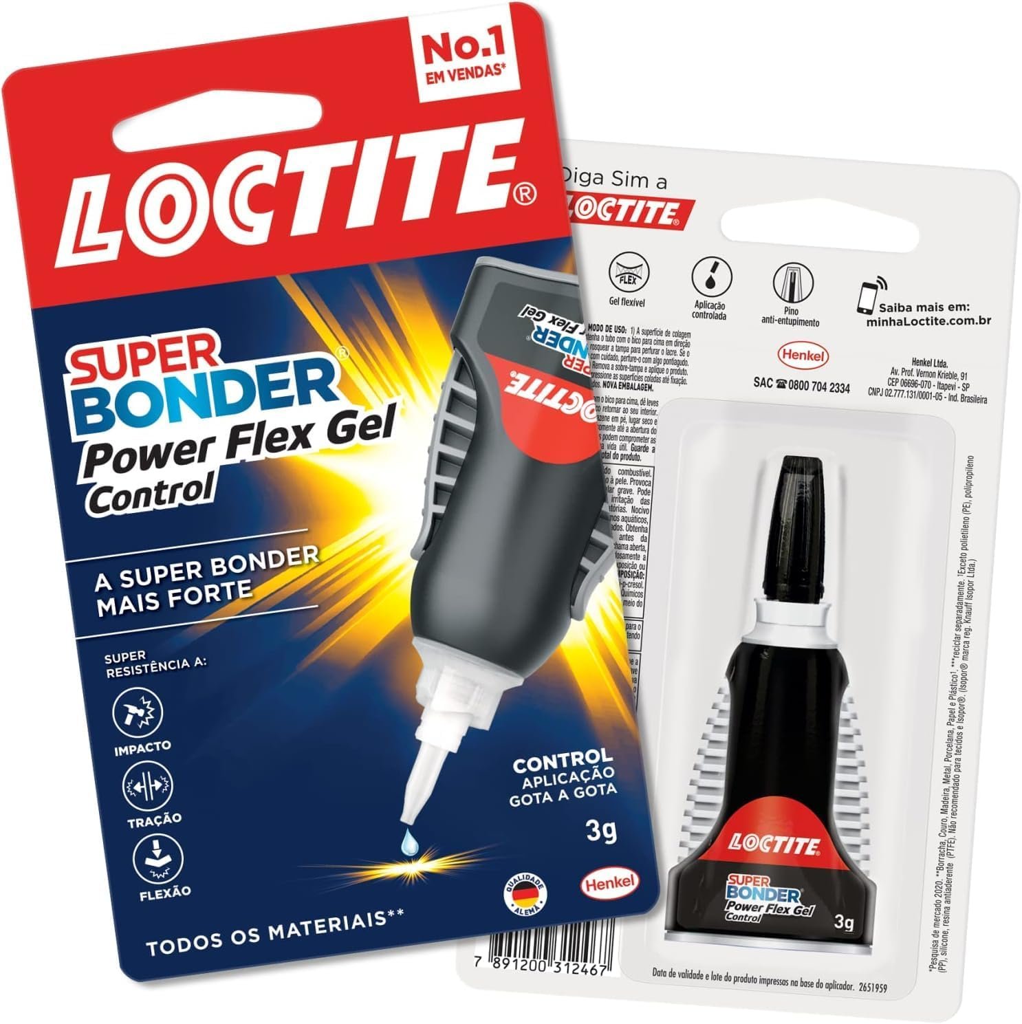 Loctite Super Bonder Flexível Controle, Gel Flexível, Super Cola com Fórmula Antigotejamento para Aplicações Verticais, Cola Transparente com Bico Preciso, 1x3g