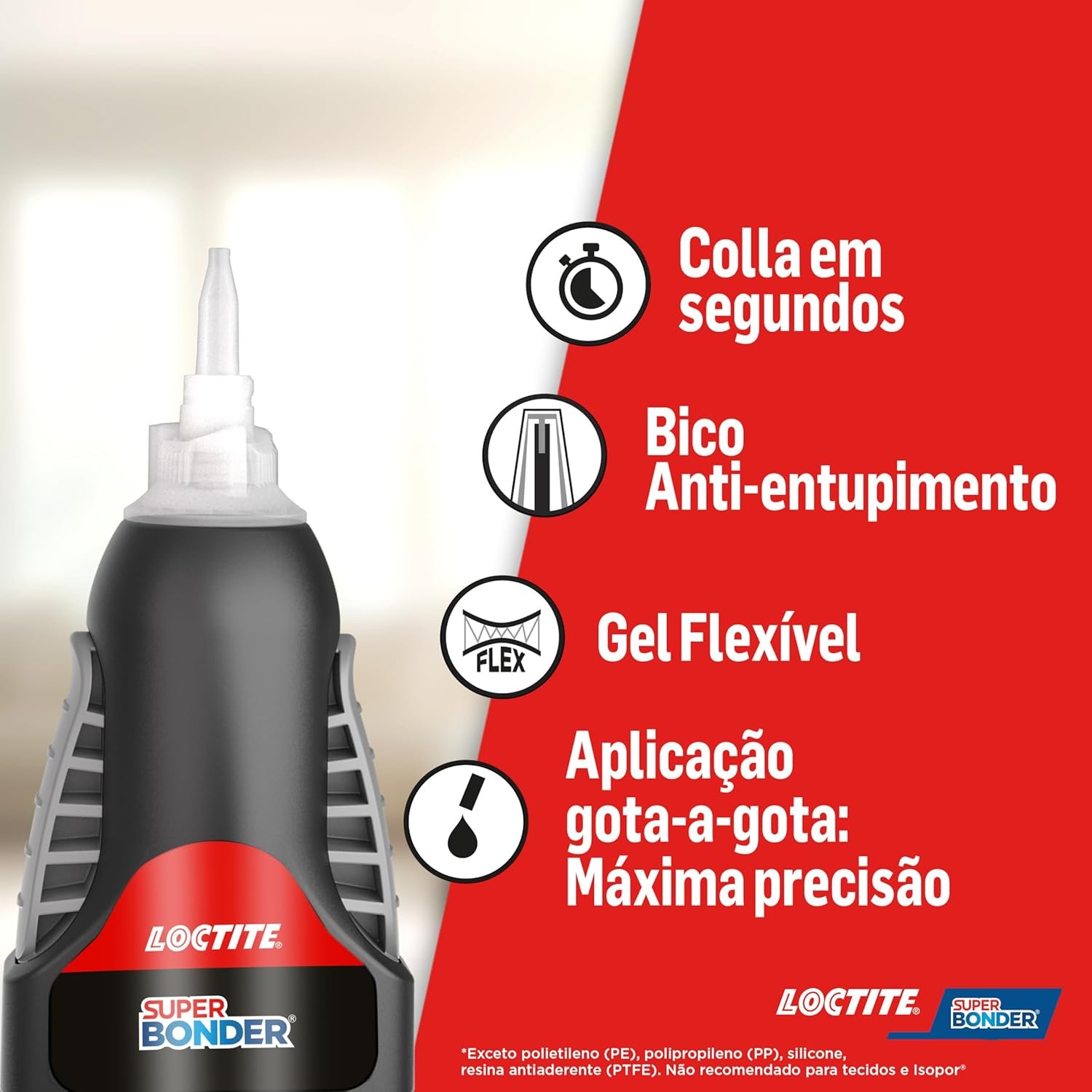 Loctite Super Bonder Flexível Controle, Gel Flexível, Super Cola com Fórmula Antigotejamento para Aplicações Verticais, Cola Transparente com Bico Preciso, 1x3gLoctite Super Bonder Flexível Controle, Gel Flexível, Super Cola com Fórmula Antigotejamento para Aplicações Verticais, Cola Transparente com Bico Preciso, 1x3g