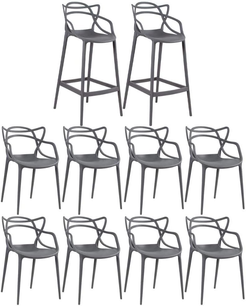Loft7, Kit – 8 x cadeiras + 2 x banquetas altas Masters Allegra – Cinza escuro
