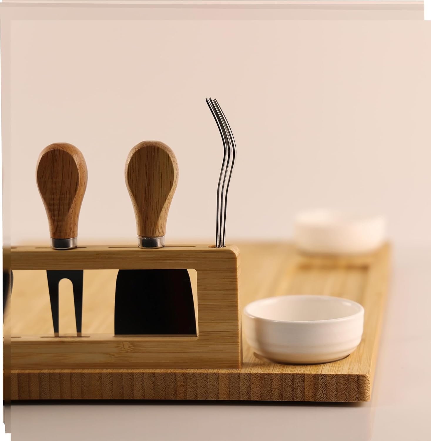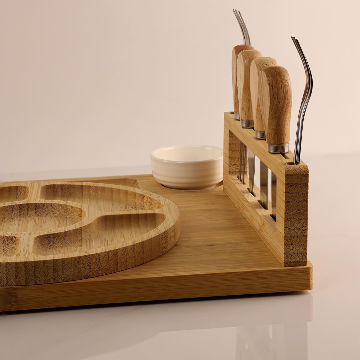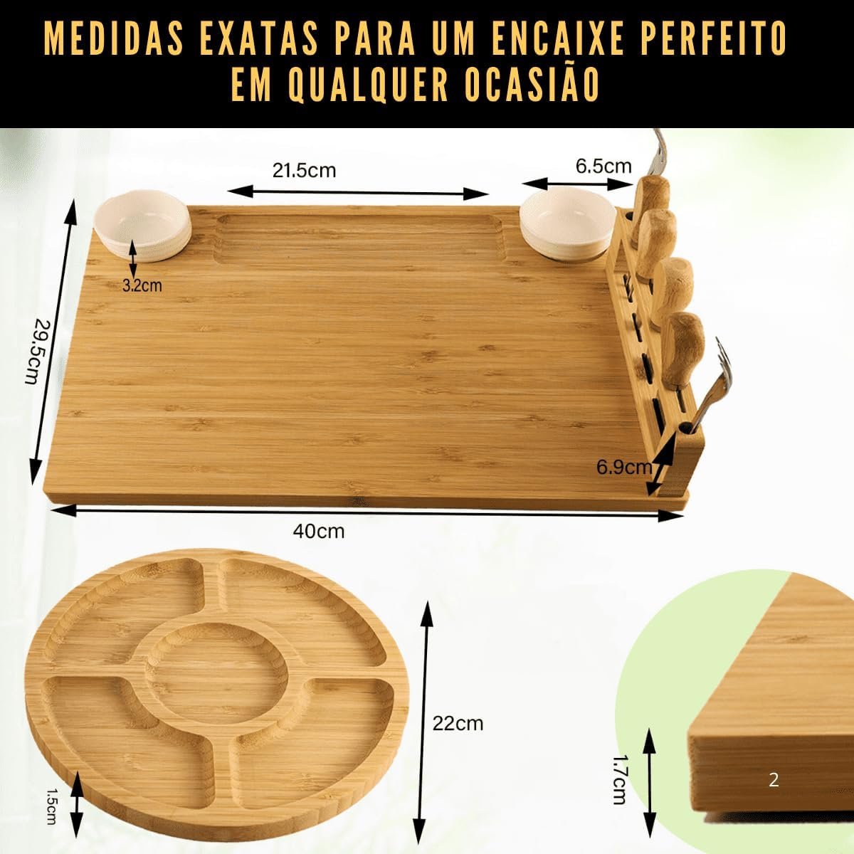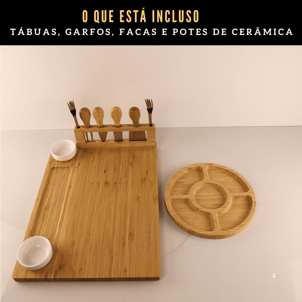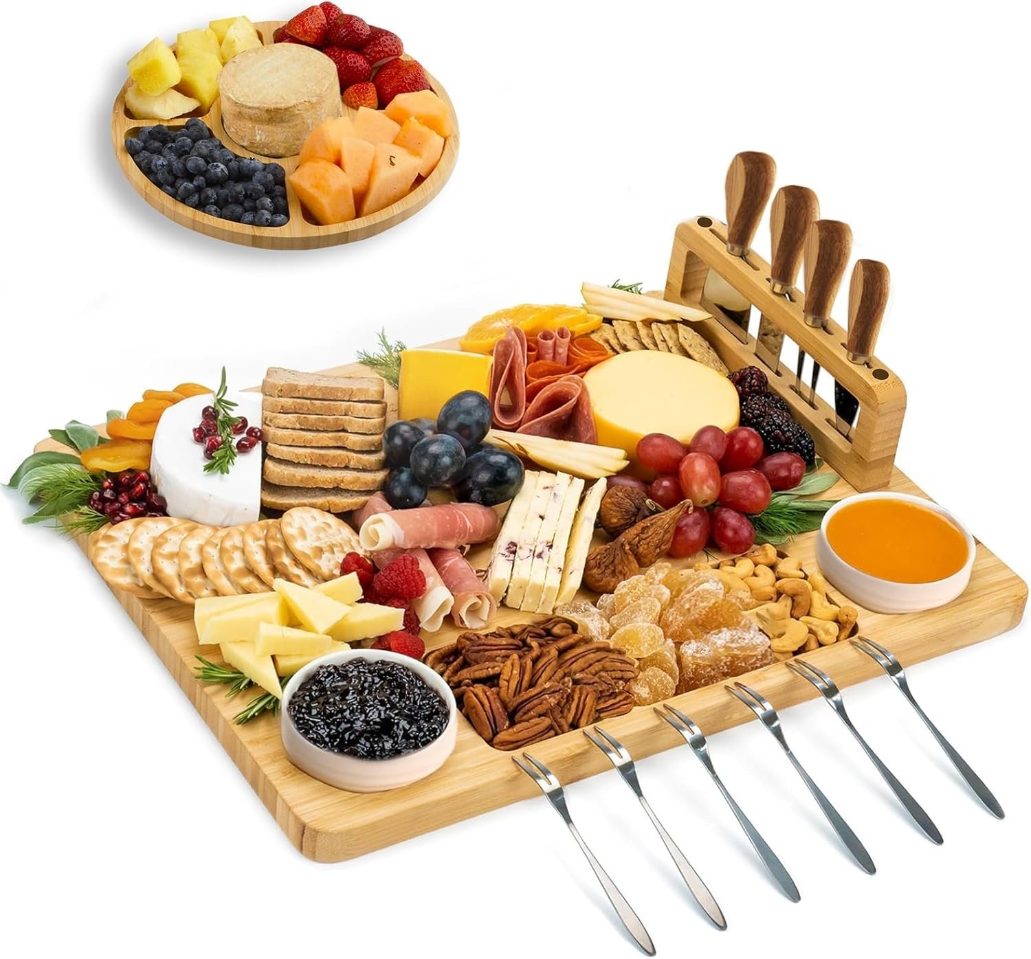 LUMAI Kit Tábua Para Queijos e Frios com Petisqueira, Facas, Garfos, Potes e Bandeja de Bambu – Ideal Para Servir Aperitivos, Snacks e Montar Mesa de Frios Completa