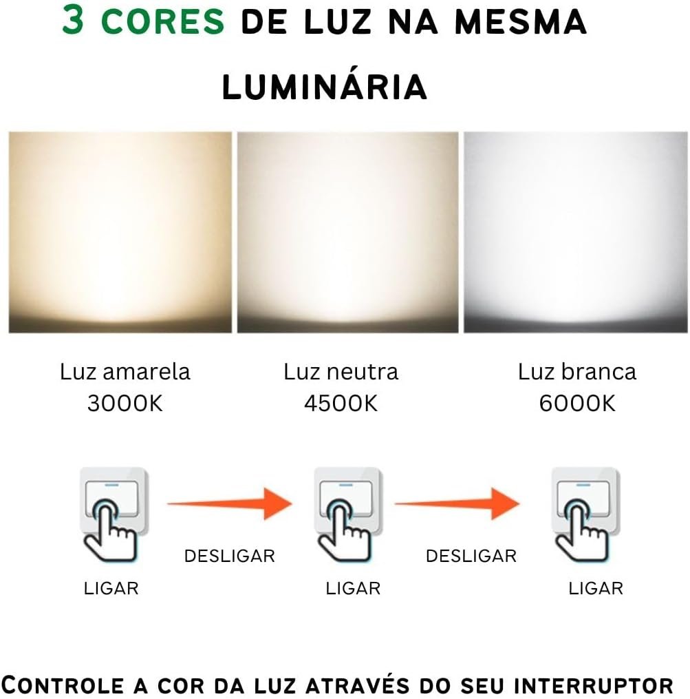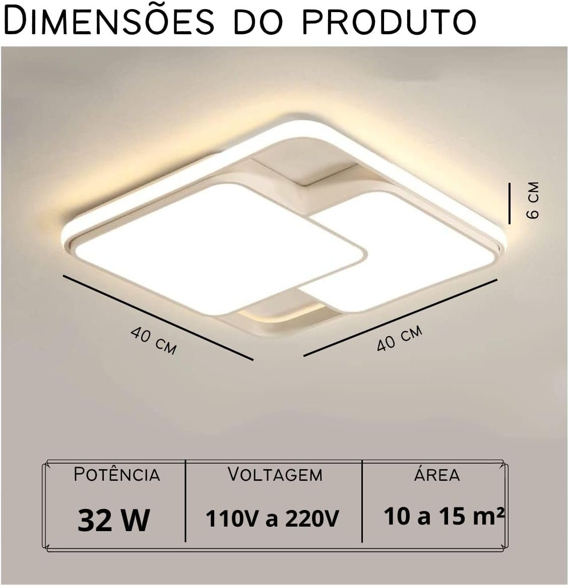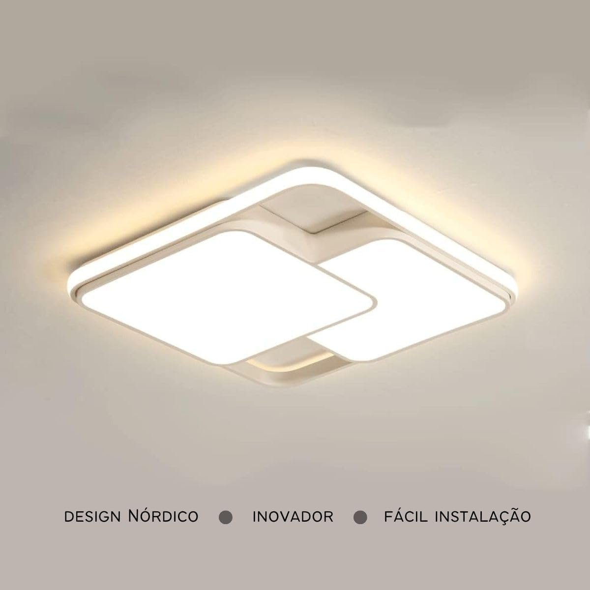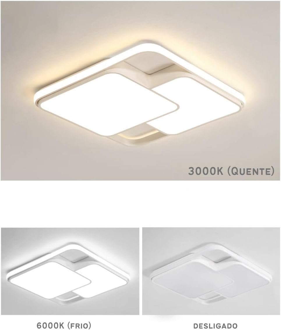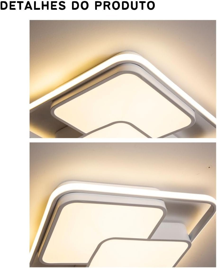 Luminária De LED De Sobrepor Quadrada Bivolt 32W 3 Em 1 Com Luz Central Dupla (Branco)
