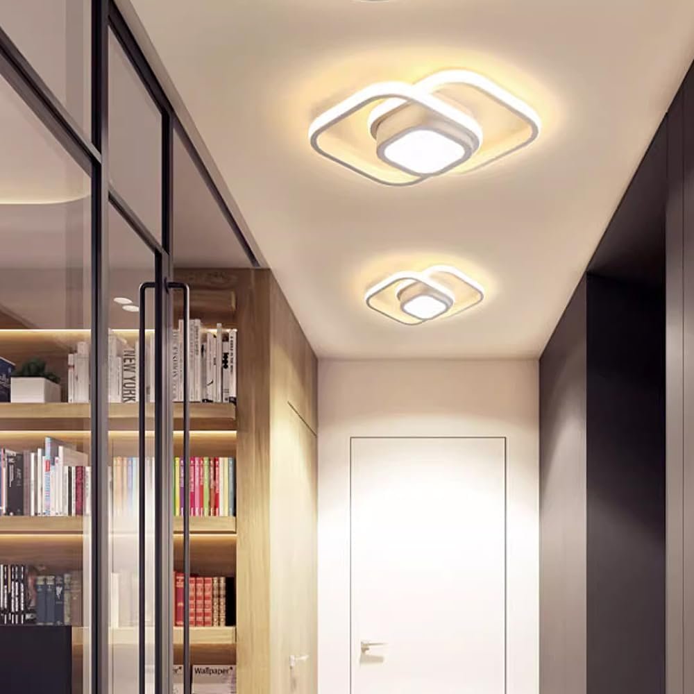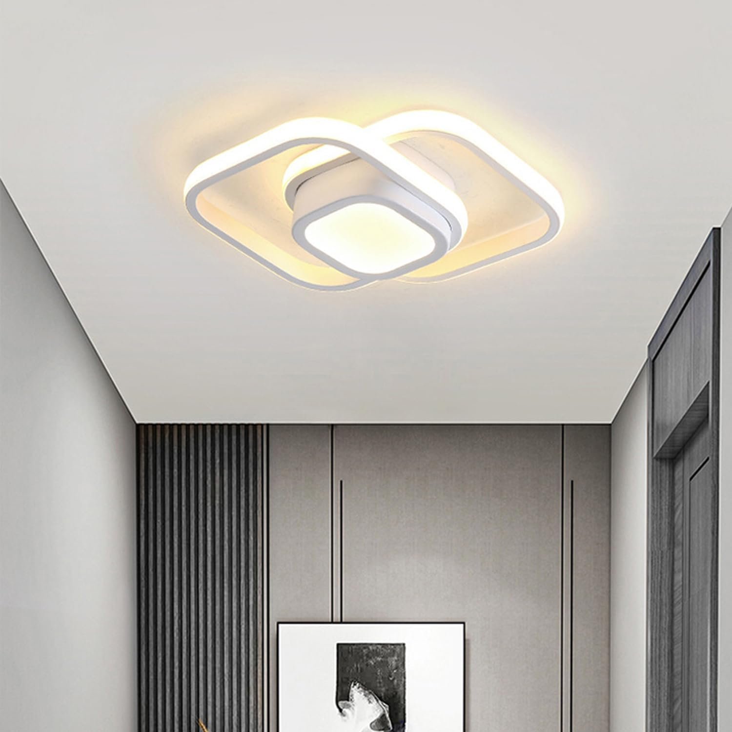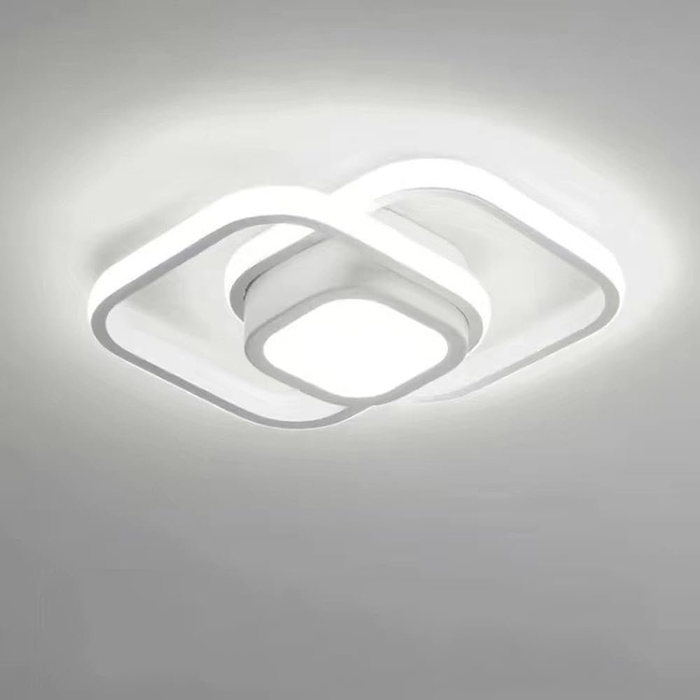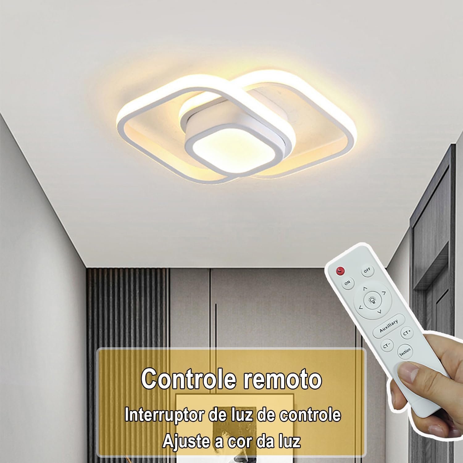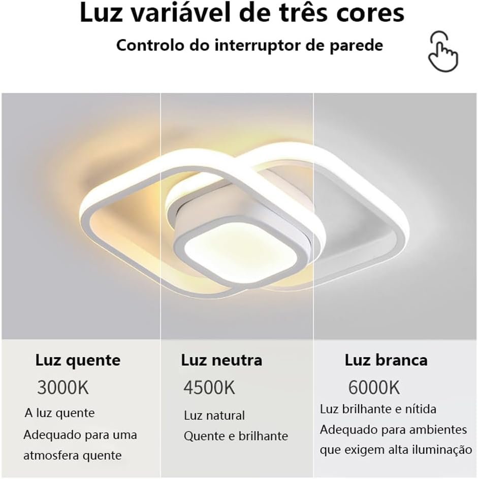 Luminária de Teto LED Moderna, Design Geométrico, 3 Modos de Iluminação, Luz Quente e Fria, Plafon Branco (Quadrado)