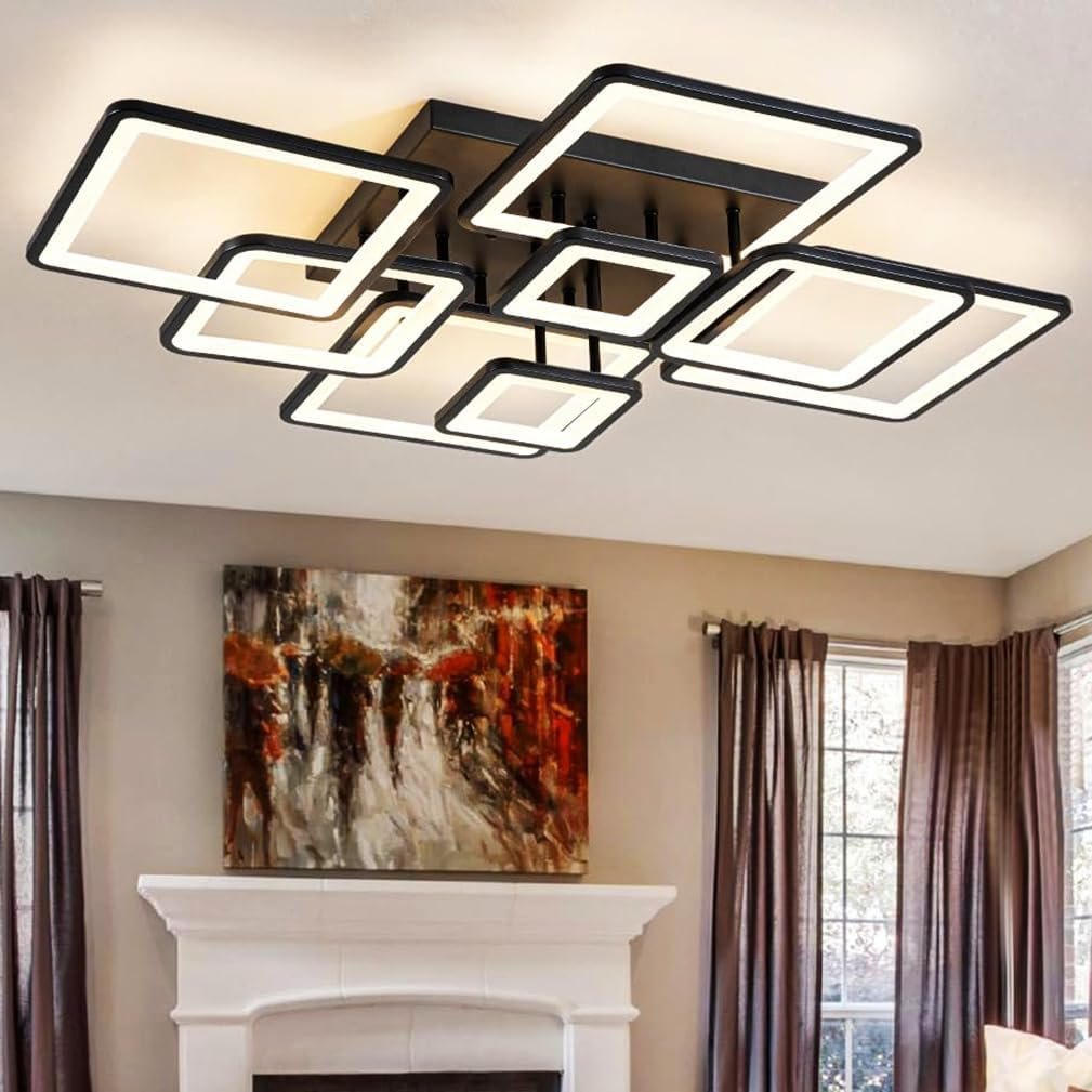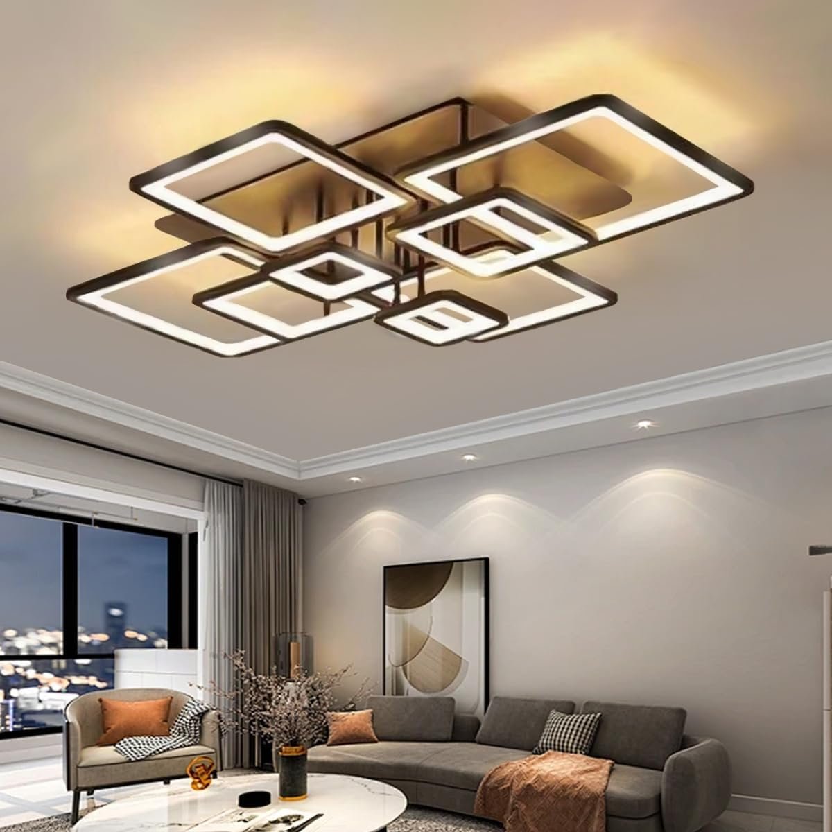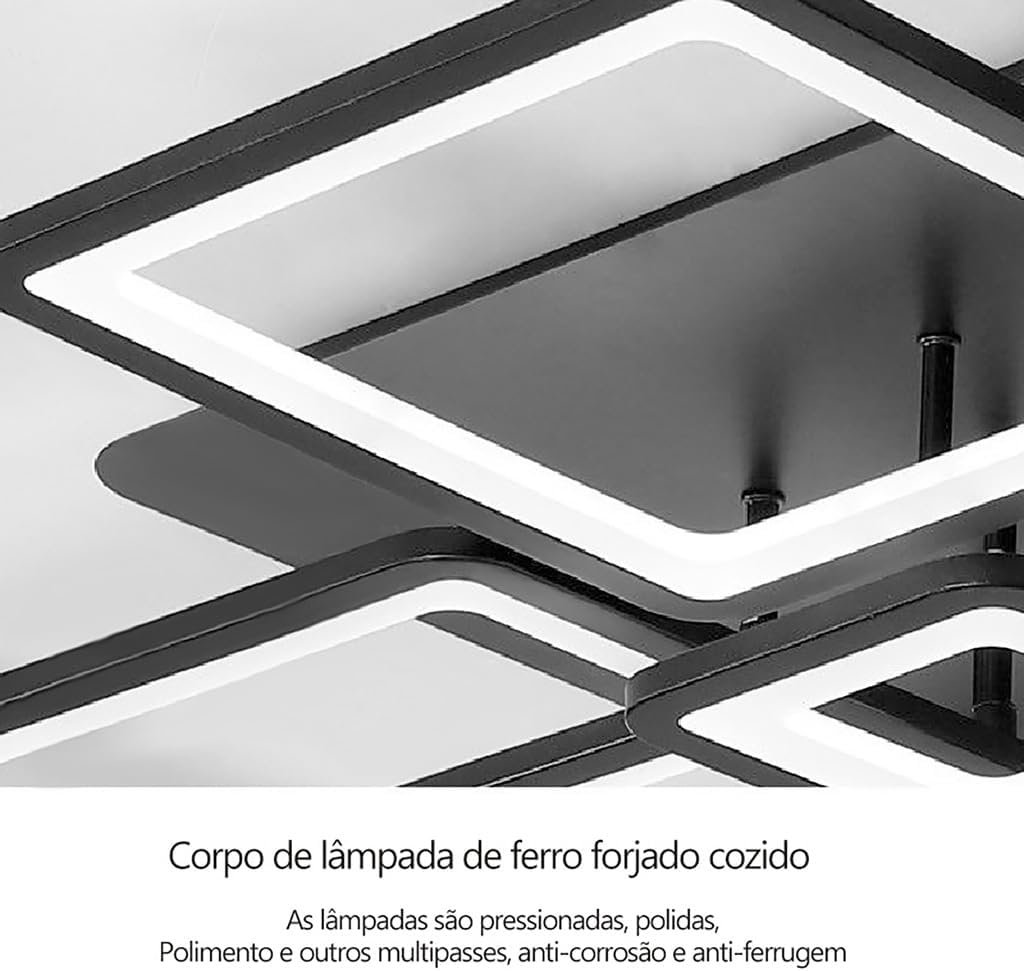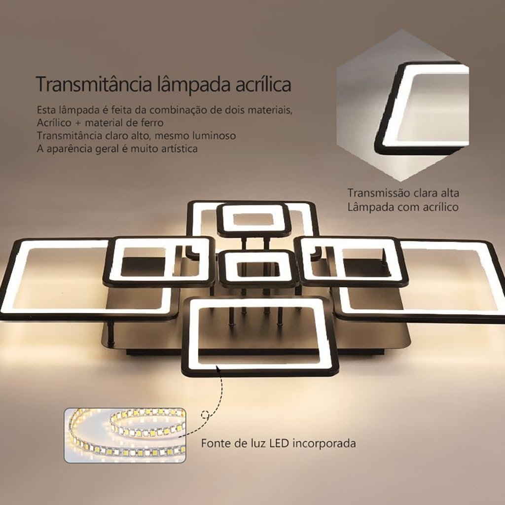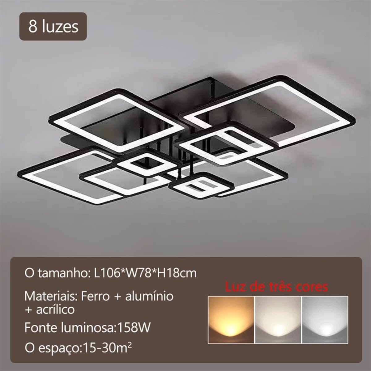 Luminária de Teto Moderna e Industrial de Ferro Minimalista com LED 3 Cores Ajustáveis para Sala, Quarto, Cozinha e Sala de Jantar (Preto 8 luzes)