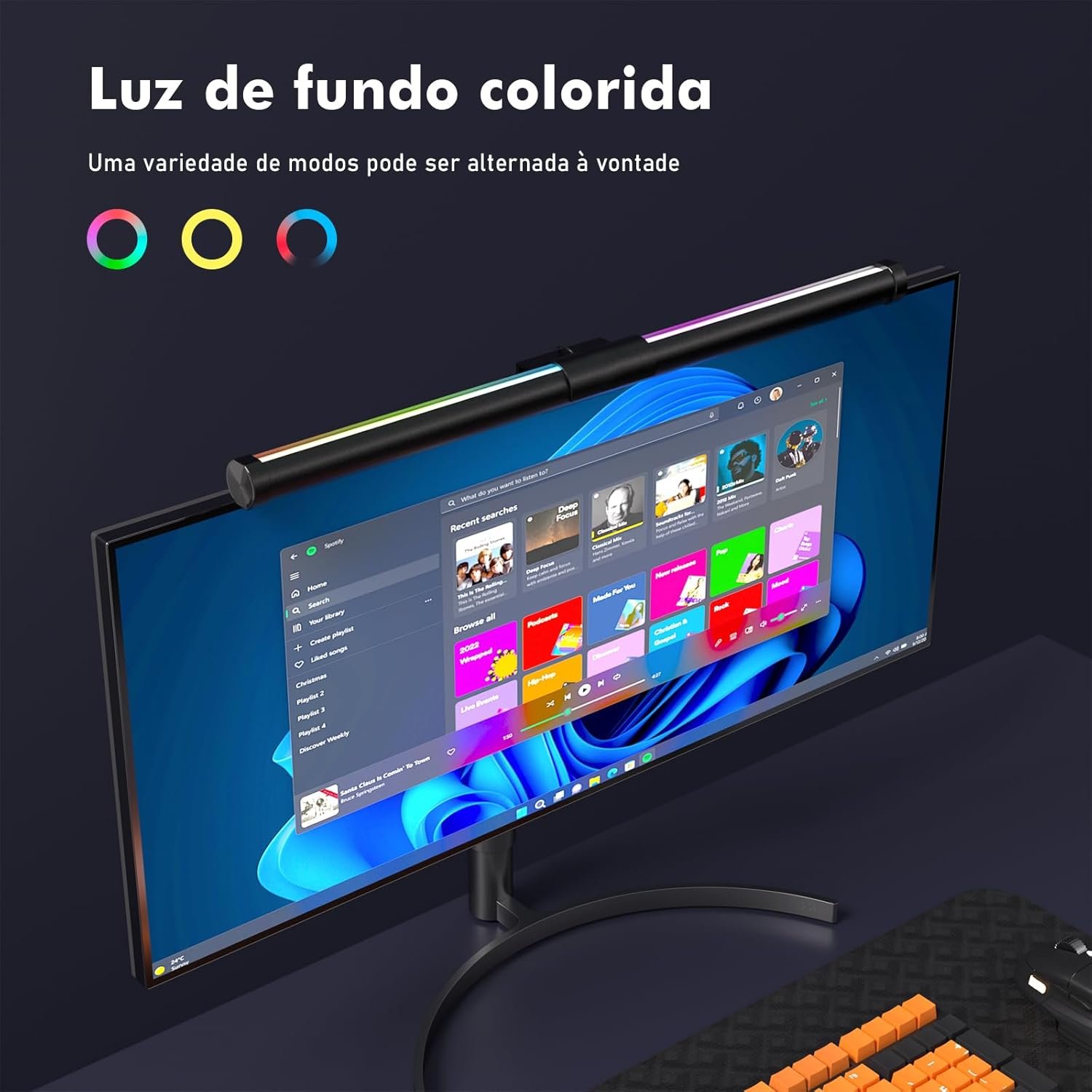 Luminaria LED para Monitor, Barra de Luz RGB para Monitor, Controle por Toque, 16 Cores, Proteção Ocular, Compatível com Computadores