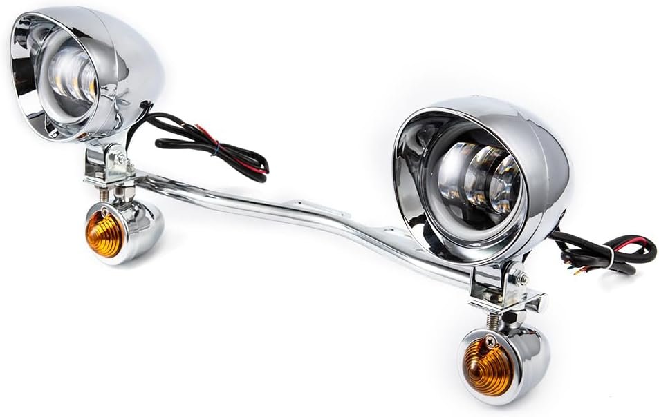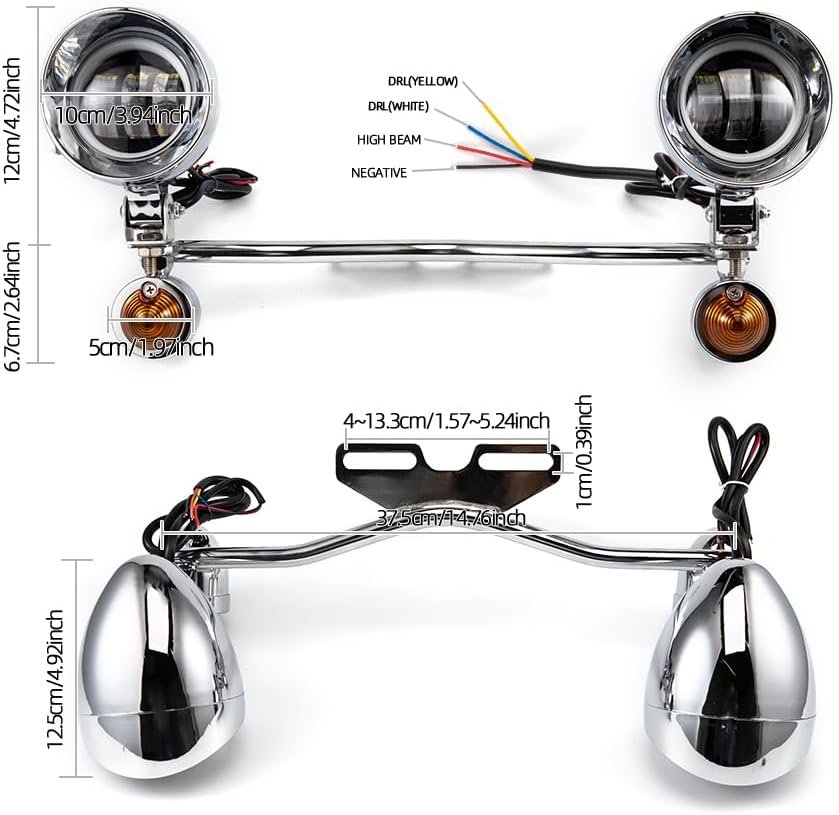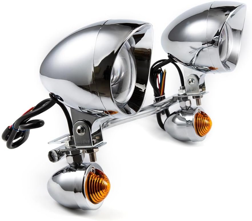 Luz auxiliar de motocicleta 10 cm farol de neblina cromado LED luz frontal com suporte de luz de sinalização conjunto para Crusier Cafe Racer Bobber Chopper luz frontal