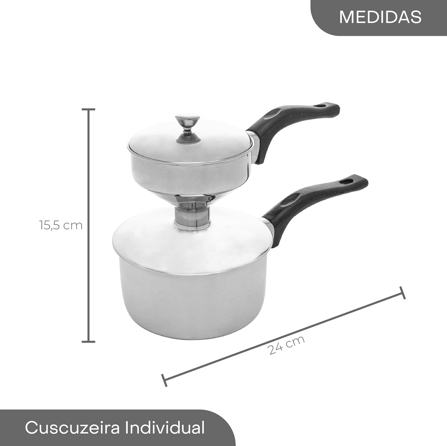 LYOR – Cuscuzeira Individual de Aço Inox 25cm x 12cm x 17,5cm