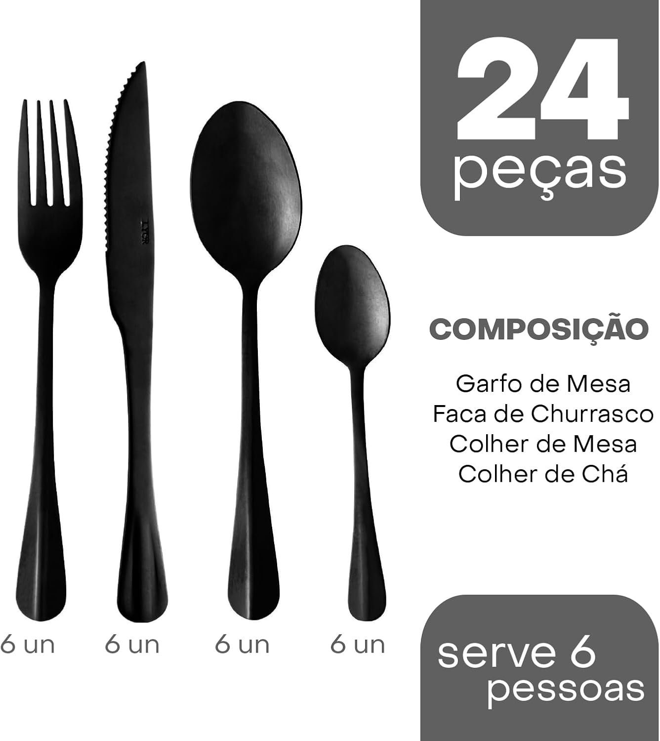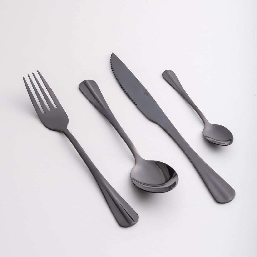 LYOR Faqueiro de Aço Inox Positano Preto 24 Peças – Jogos de Talheres – Mesa Posta – Utensílios de Cozinha, Enxoval, Casamento, Decoração