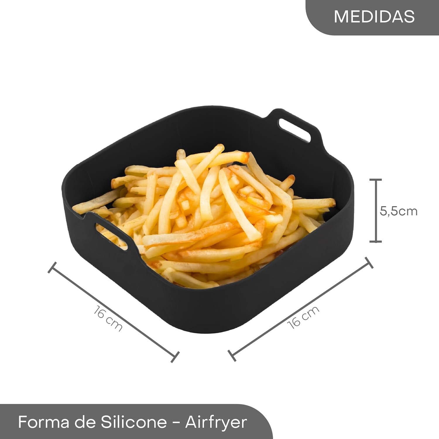 LYOR – Forma Quadrada de Silicone para Air Fryer Preta 16cm x 5,5Cm