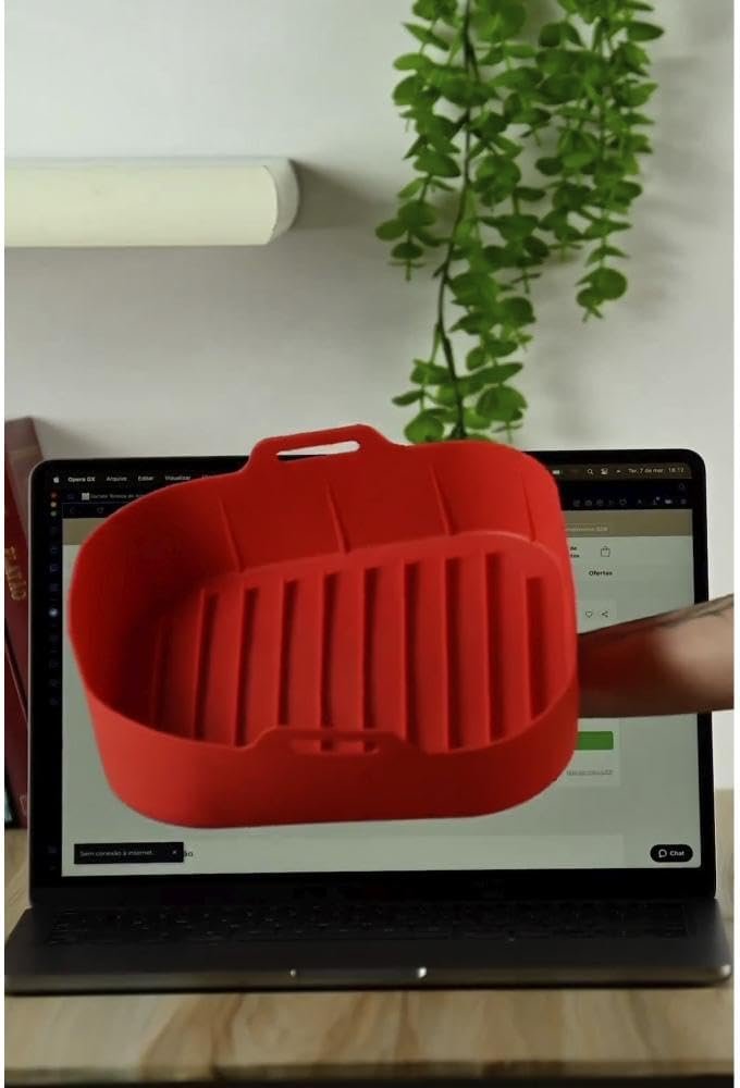 LYOR – Forma Quadrada de Silicone para Air Fryer Vermelha 20cm x 7cm