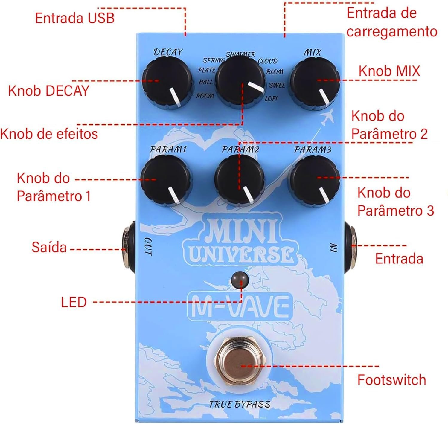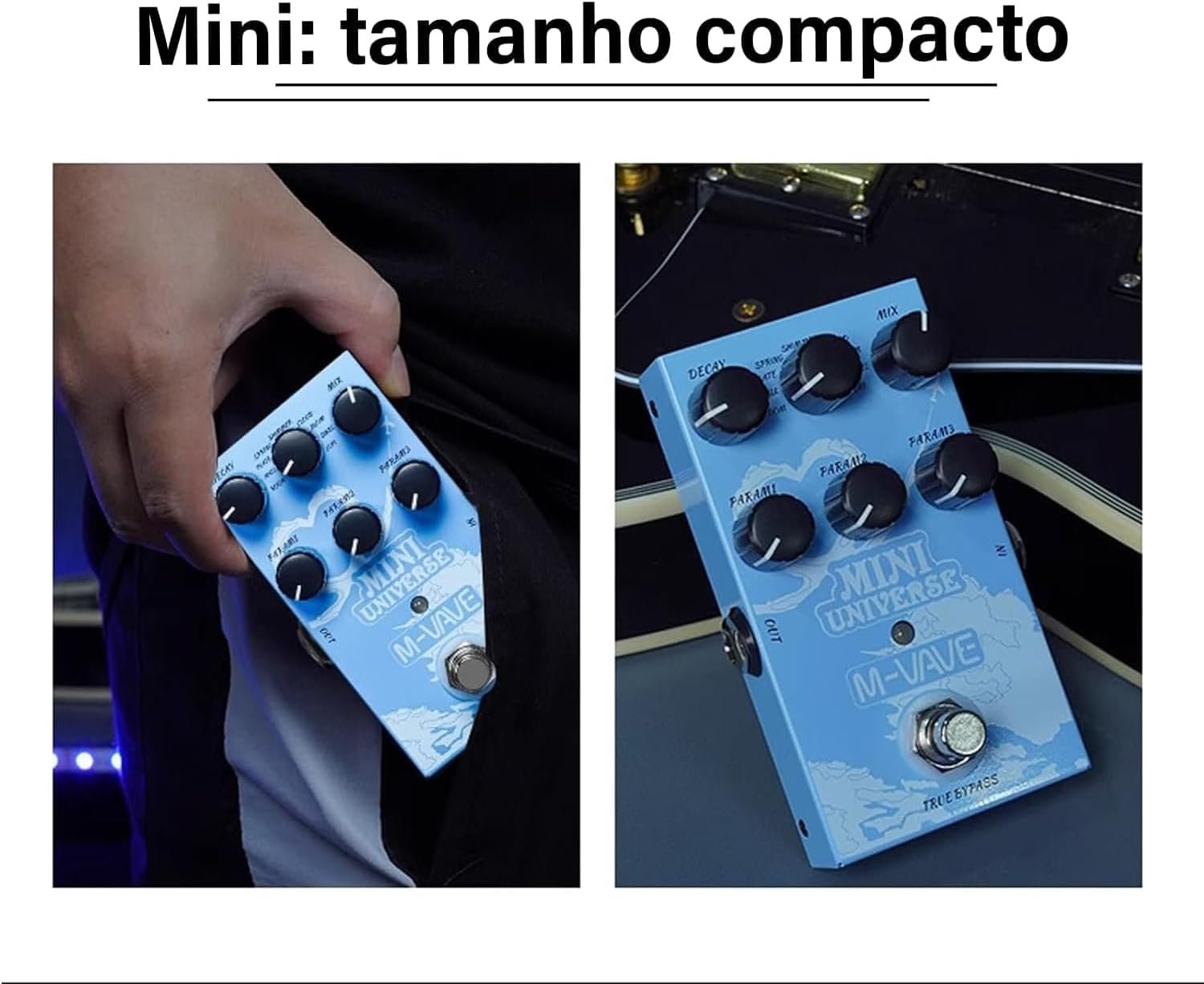 M-VAVE VEDO Pedal de efeitos de reverberação Mini Universe para guitarra elétrica, design True Bypass para guitarra, estojo de metal, fácil de operar 9 tons universais de reverberação, cordas