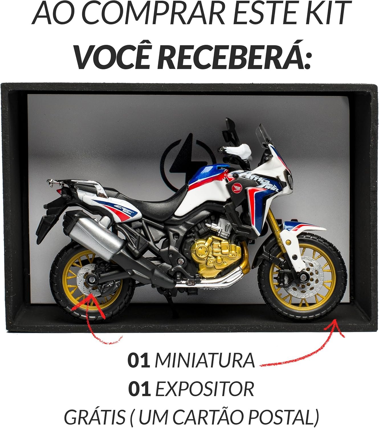 Machine Cult – Miniatura e Expositor Moto Africa Twin DCT – Réplica Oficial – Kit com Expositor