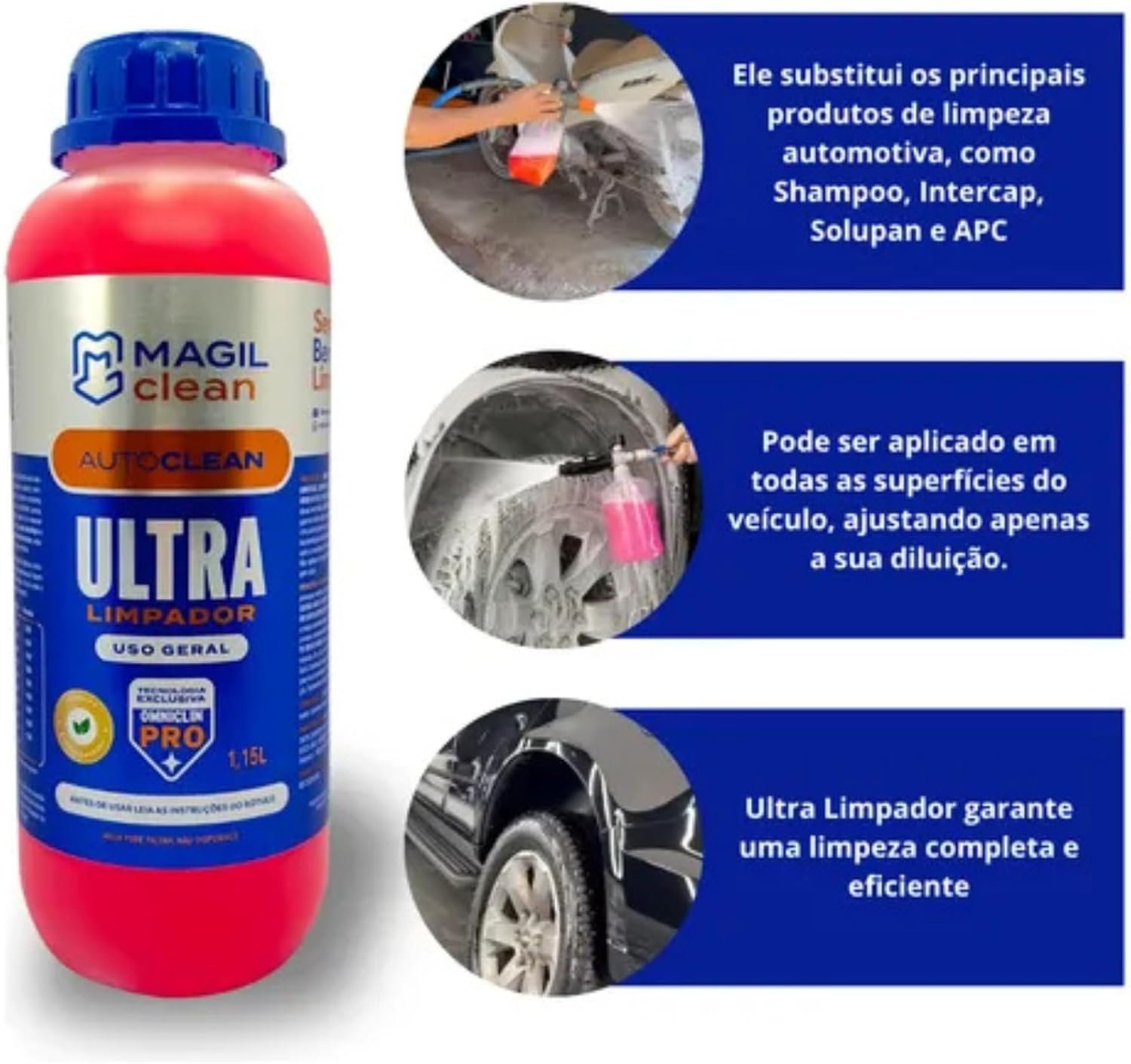 Experimente o Magilclean Shampoo Automotivo Ultra -Three Brothers e transforme a limpeza do seu carro, moto, caminhão ou trator. Com sua fórmula exclusiva, ele remove com eficiência sujeiras pesadas e leves, deixando seu veículo impecável em cada lavagem.