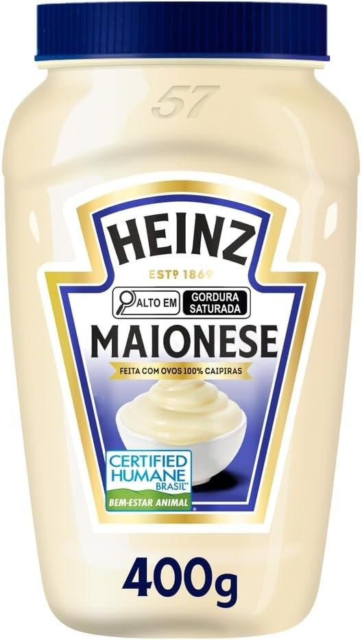 Descrição: A Maionese Heinz Tradicional 400g é a escolha perfeita para deixar seus pratos ainda mais saborosos e irresistíveis. Feita com ingredientes de alta qualidade, ela proporciona um sabor único e cremoso que vai transformar suas refeições em momentos especiais. Experimente a maionese preferida de quem entende de sabor!