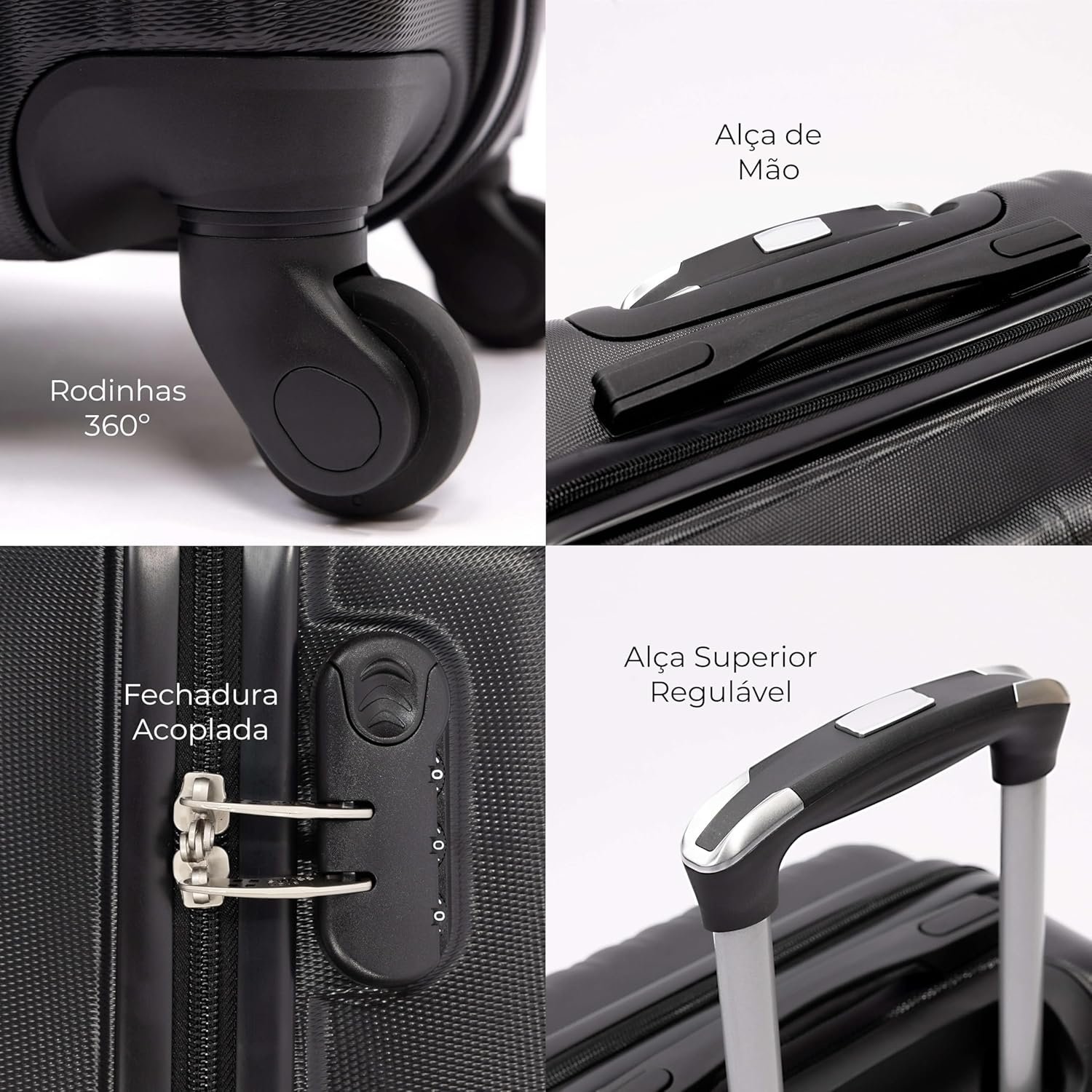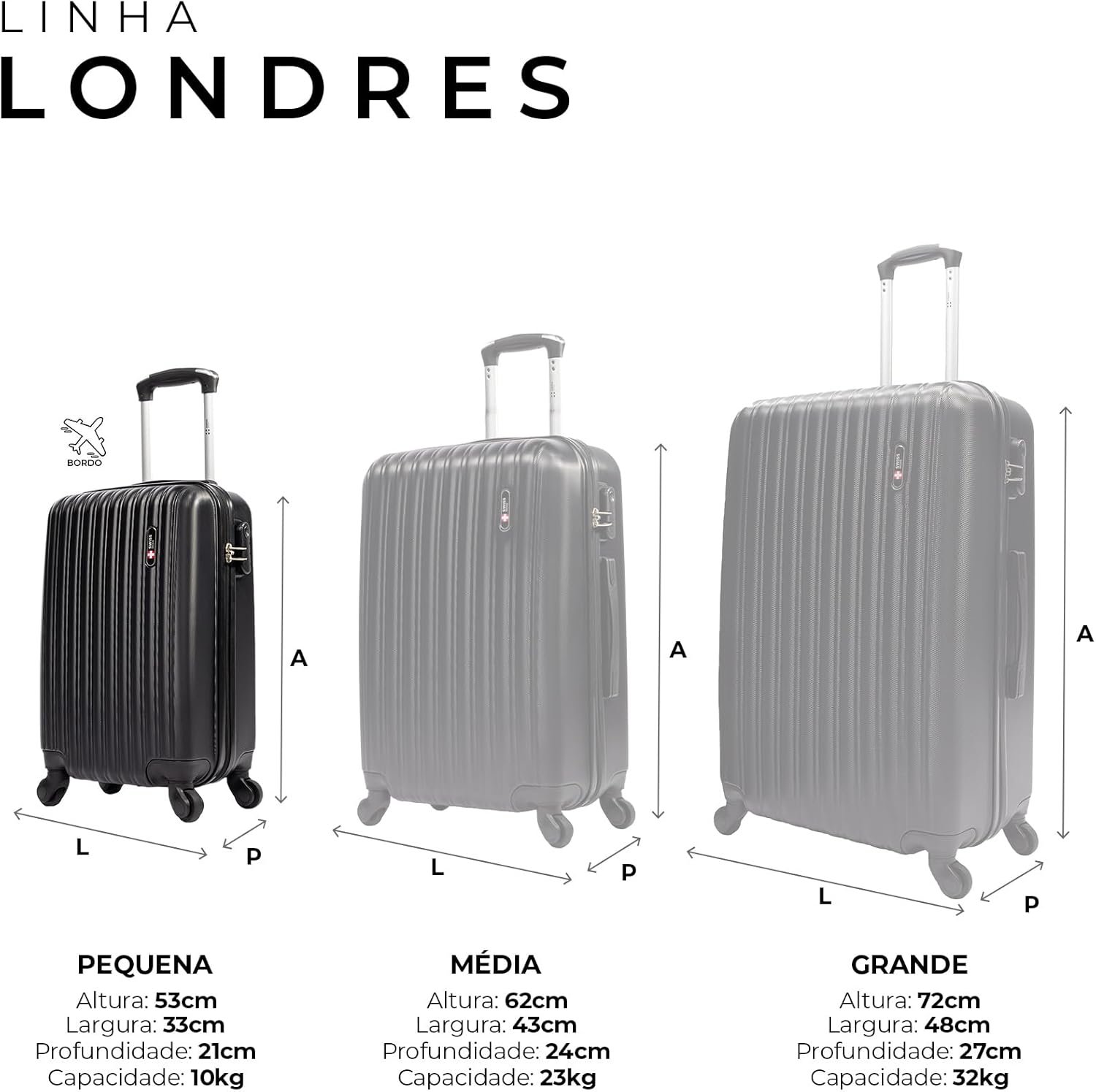 Seja o primeiro a avaliar “Mala de viagem bordo pequena 10kg Londres Swiss Move Preto”