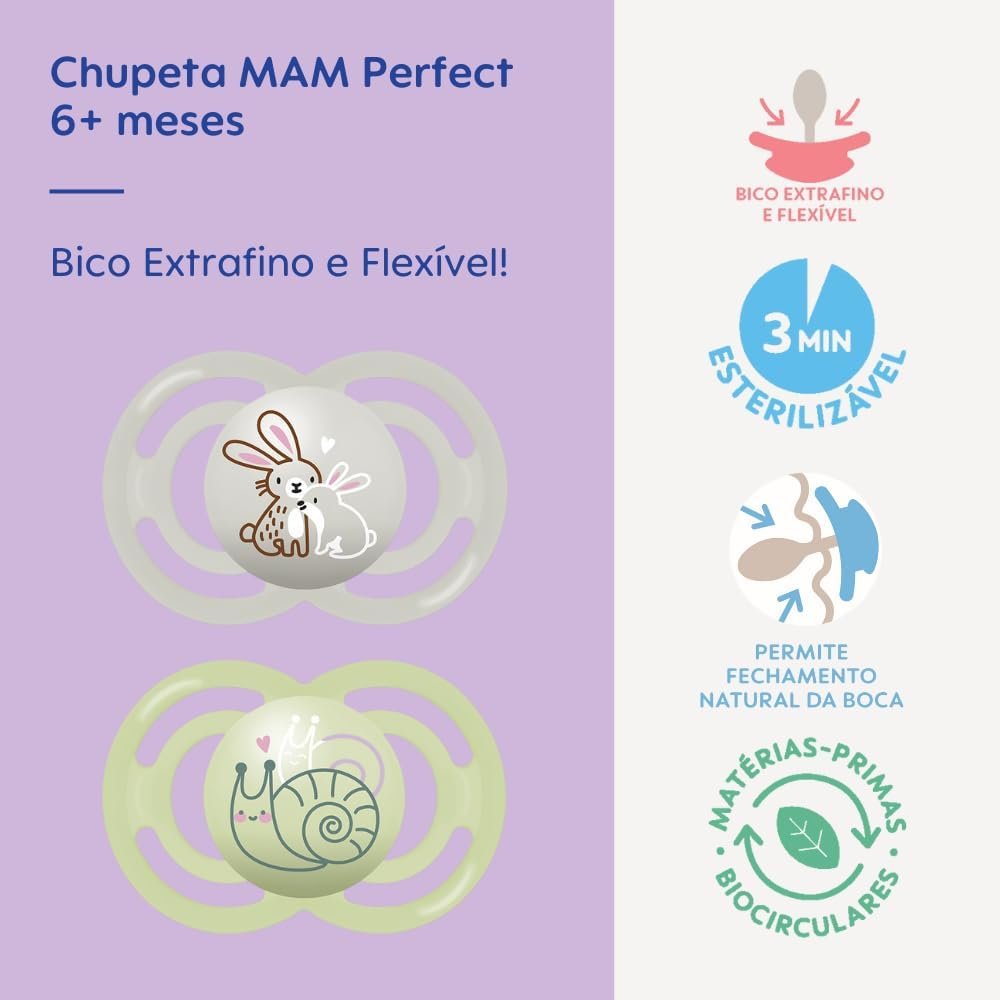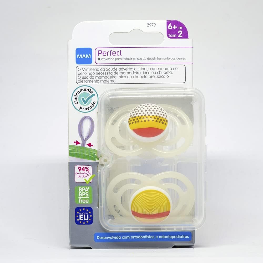 MAM Baby Kit Com 2 Chupetas Perfect Com Bico Extrafino Silicone SkinSoft para Crianças 6+ Meses Com Caixa Esterilizadora, Neutra