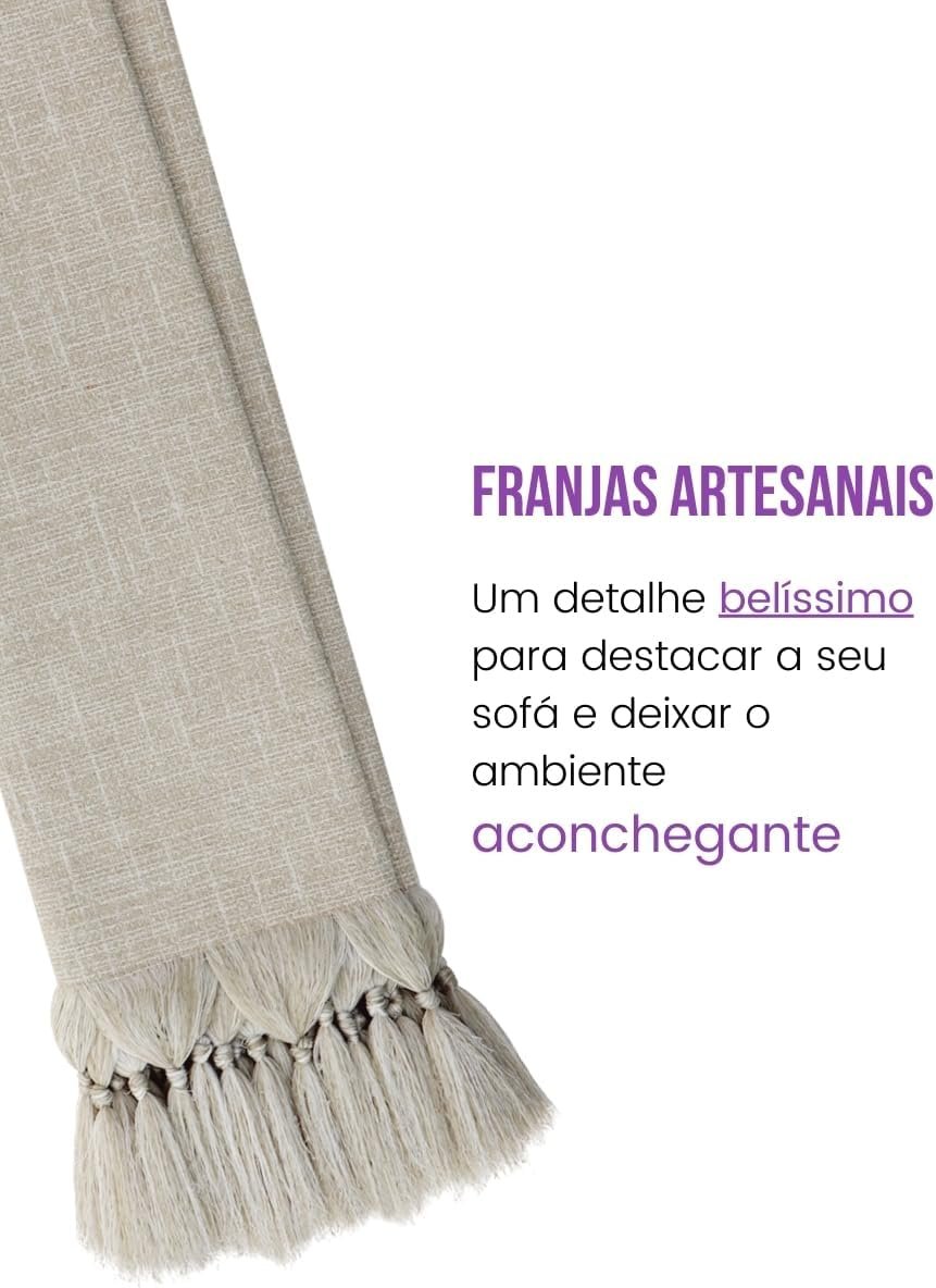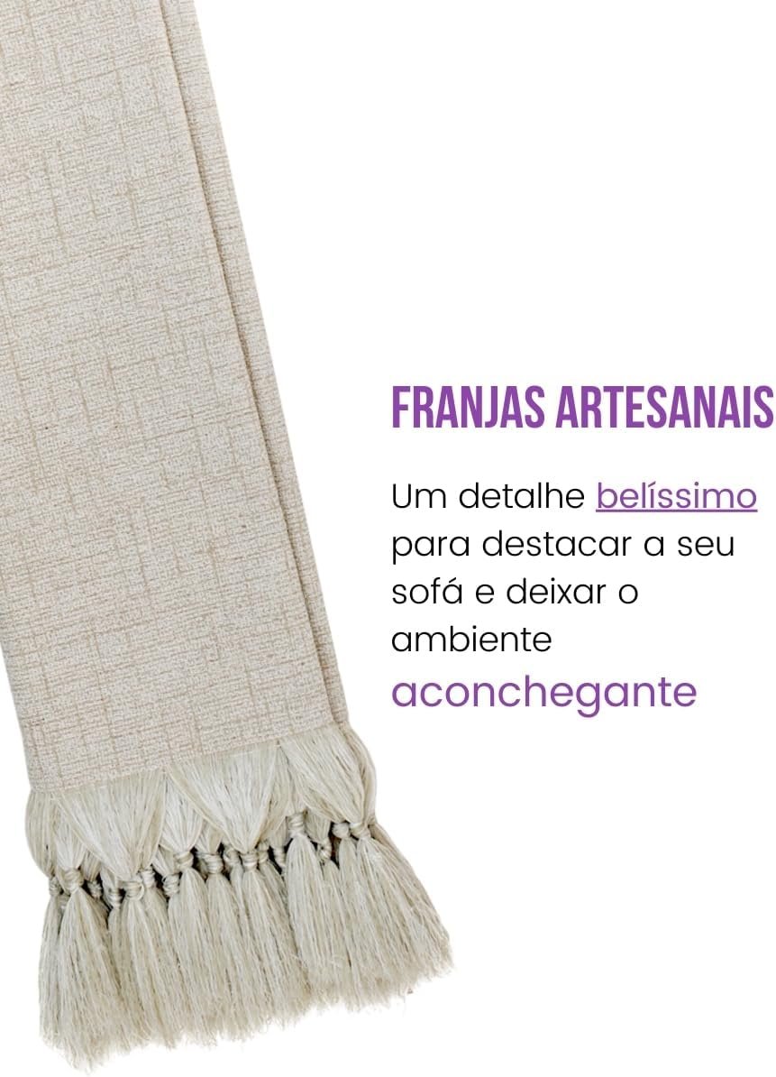 Manta Para Sofá Gigante 3,00m Bege Cru Jacquard Linho Decoração Sala