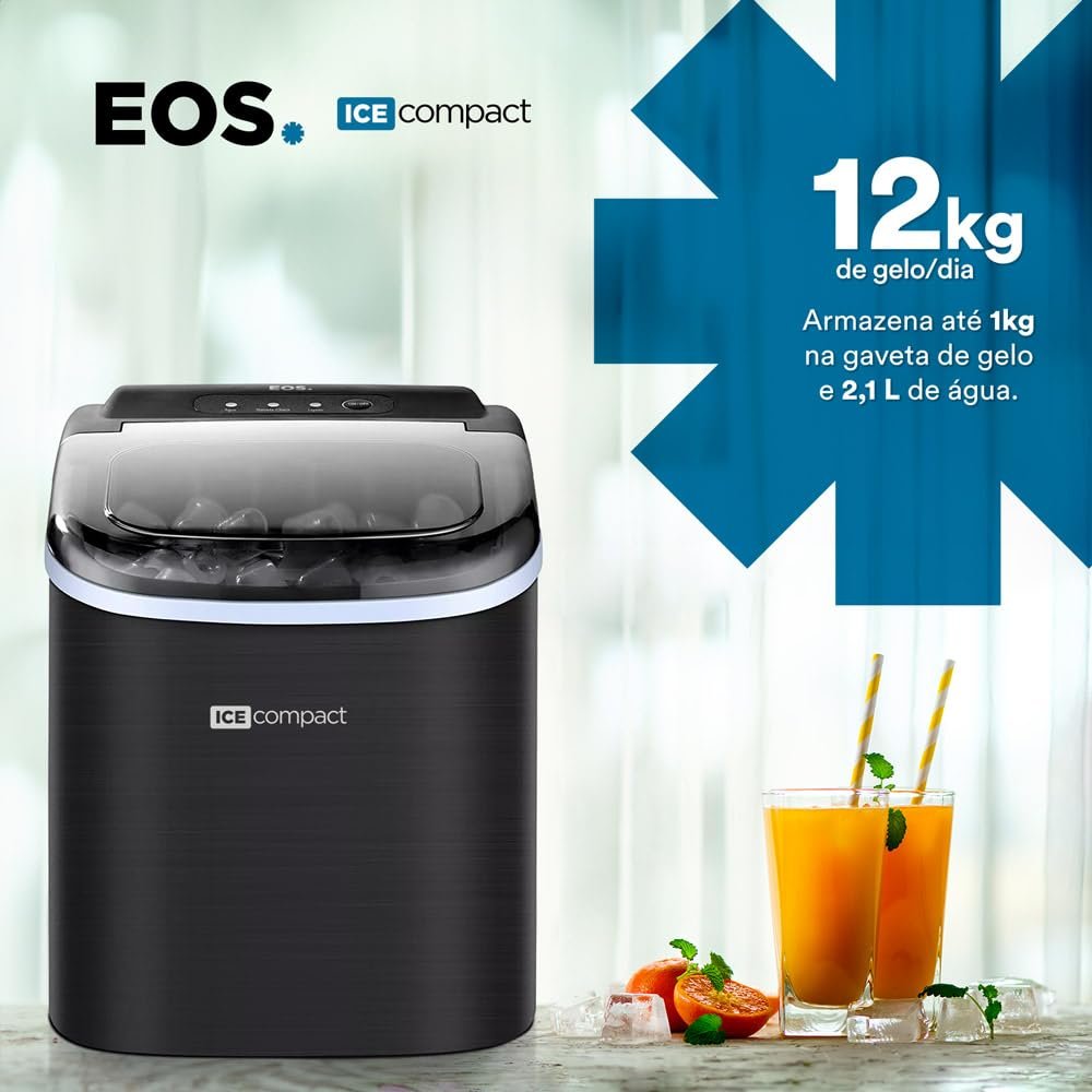 Com a Máquina de Gelo EOS 12Kg Ice Compact Inox All Black EMG06P 110V, tenha gelo fresco e em quantidade sempre que precisar! Seu design compacto em inox preto se adapta a qualquer ambiente, proporcionando praticidade e elegância. Produz até 12kg de gelo por dia, ideal para festas, eventos ou uso doméstico. Adquira a sua e tenha gelo de qualidade com facilidade!