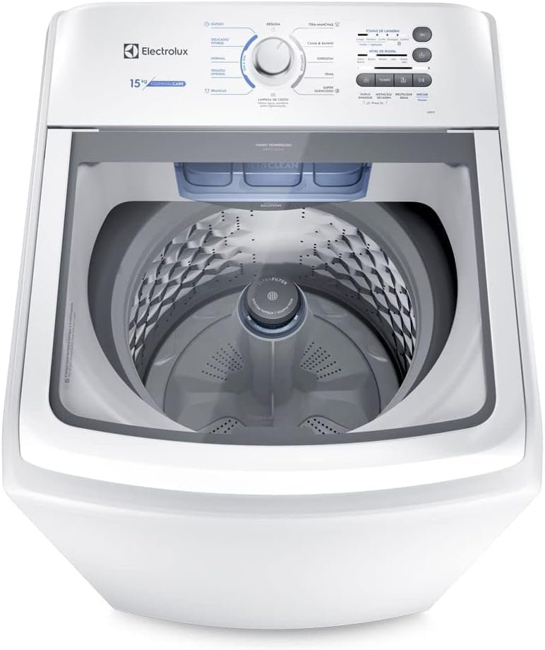 Descrição: A Máquina de Lavar Electrolux 15kg Essential Care é a solução perfeita para famílias que buscam praticidade e eficiência na lavagem de roupas. Com cesto em inox e tecnologia Jet&Clean, garante uma limpeza profunda e preserva as peças por mais tempo. Além disso, seu design moderno e sofisticado vai agregar estilo ao seu espaço. Leve para casa essa aliada poderosa e simplifique sua rotina de lavanderia!