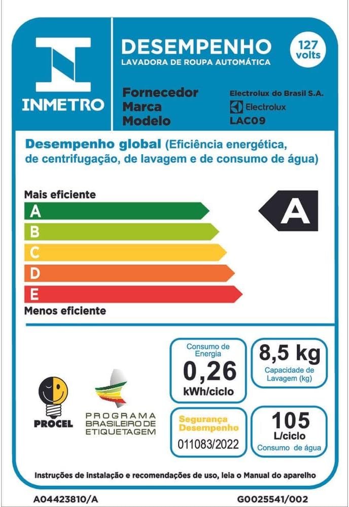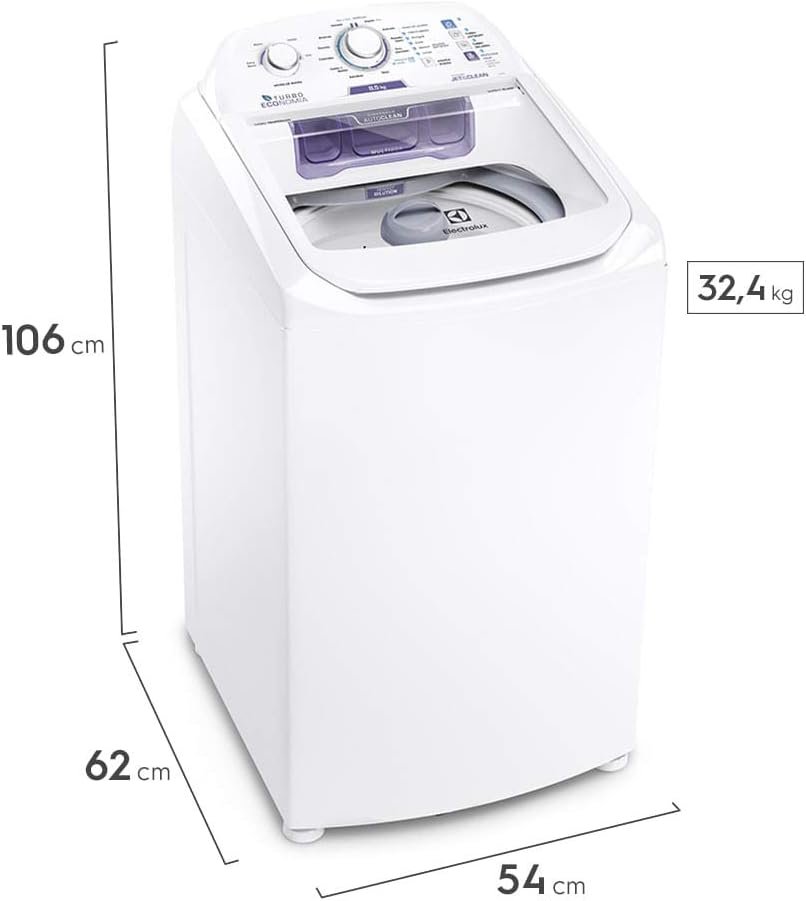 Máquina de Lavar Electrolux 8,5kg Branca Turbo Economia com Jet&Clean e Filtro Fiapos (LAC09) – 127V