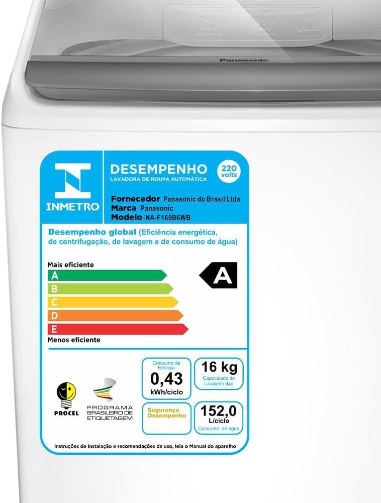 Máquina De Lavar Panasonic 16kg Branco NA-F160B6WB 220vMáquina De Lavar Panasonic 16kg Branco NA-F160B6WB 220v