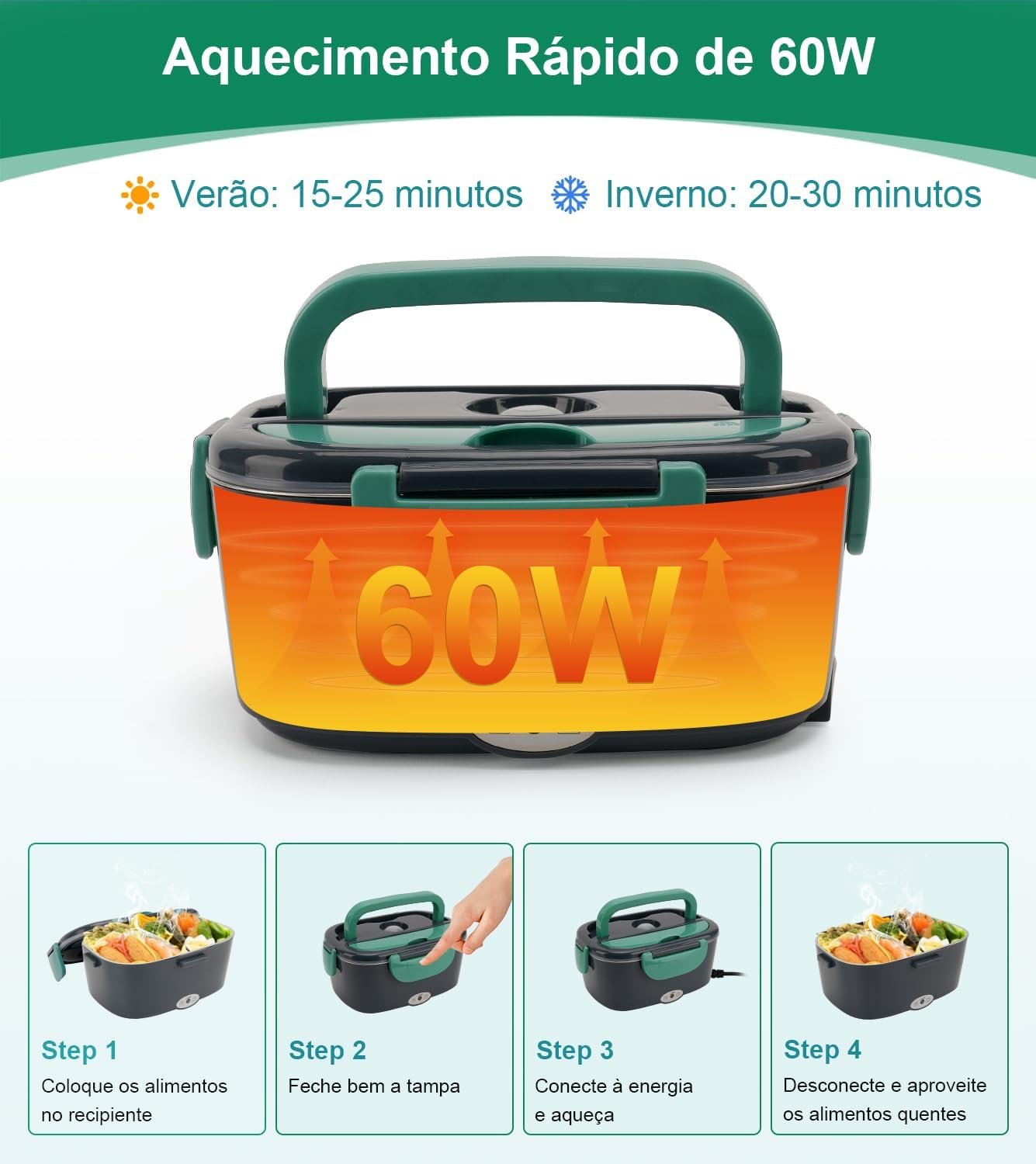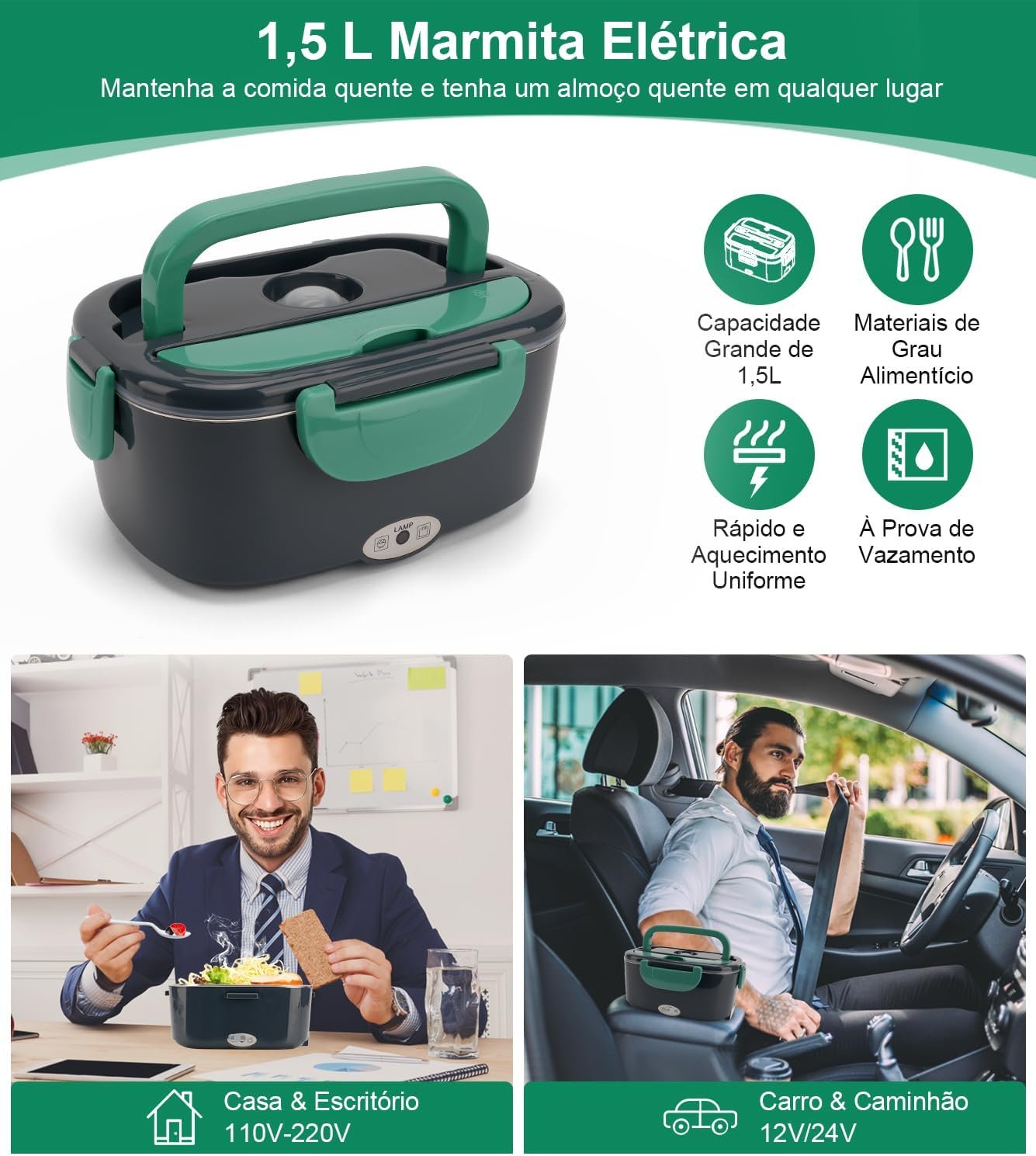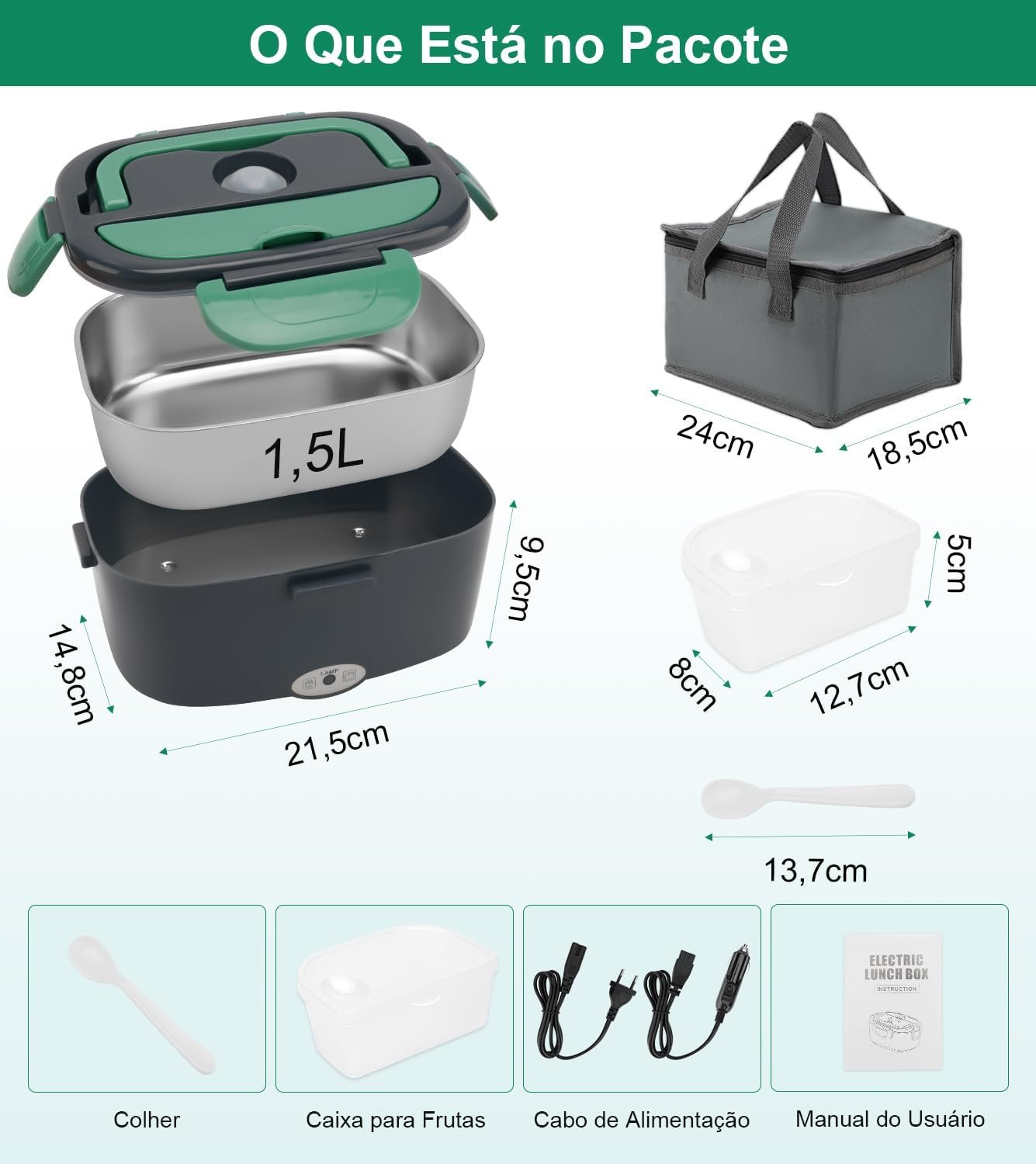 Marmita Elétrica 1,5L Aço Inox Portátil Bivolt 12v/24v 110v/220v Lancheira Térmica para Adultos para Carro/Caminhão/EscritórioMarmita Elétrica 1,5L Aço Inox Portátil Bivolt 12v/24v 110v/220v Lancheira Térmica para Adultos para Carro/Caminhão/Escritório