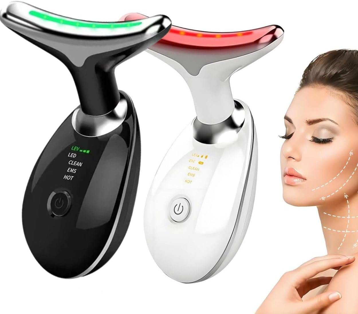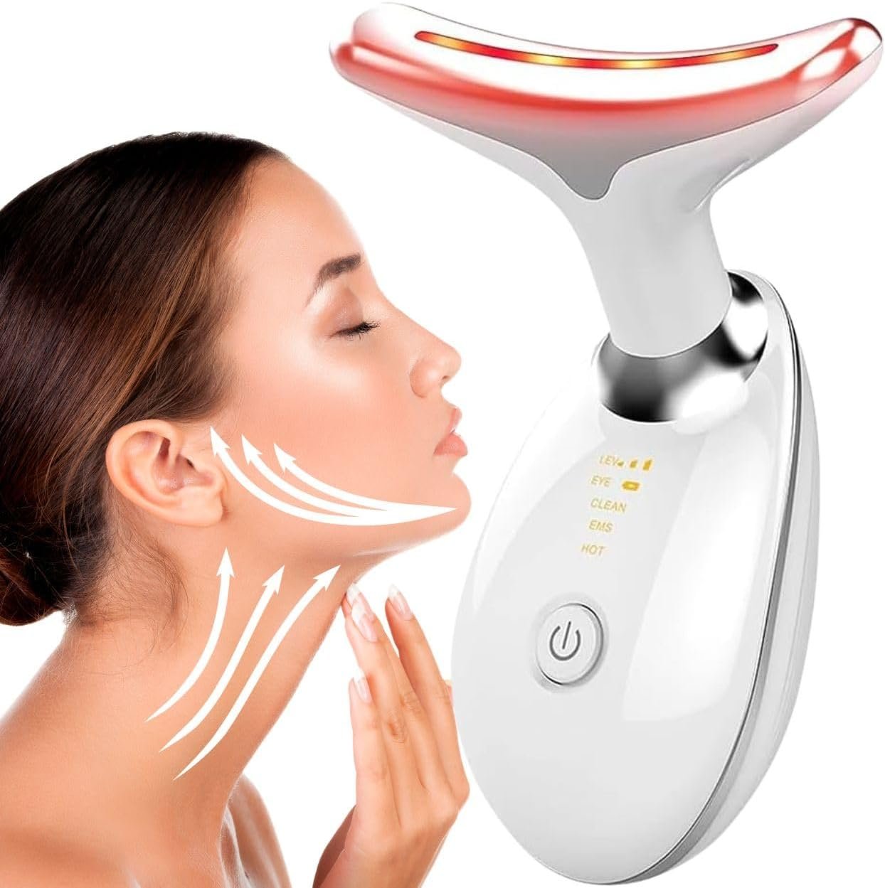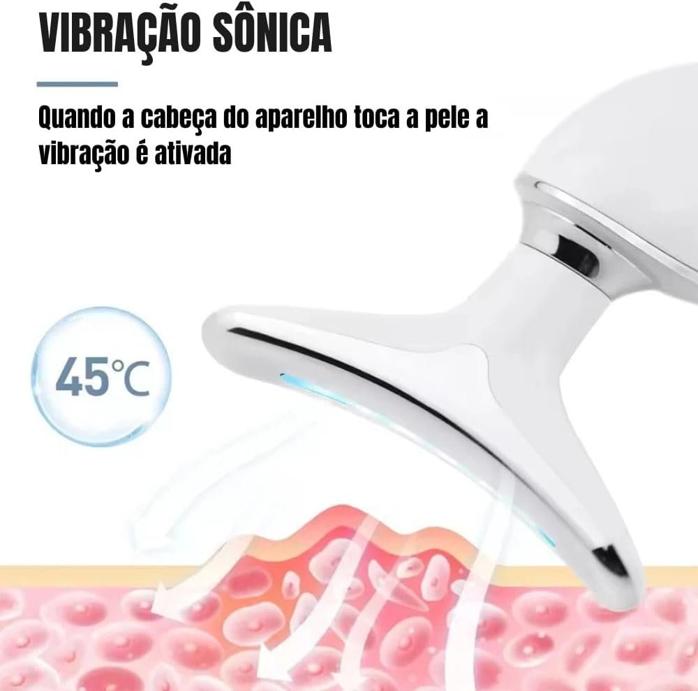 Massageador Facial LED com 7 Cores, Vibração e Fototerapia, Tratamento Lifting Anti-Idade com EMS e Aquecimento, Anti Rugas, Tira Papada (branco)