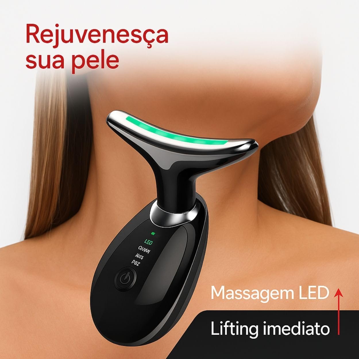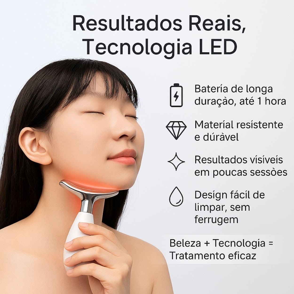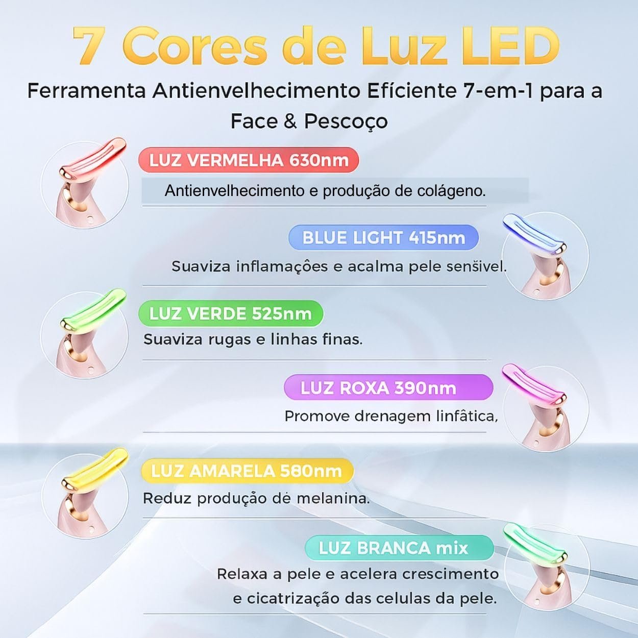 Massageador Facial LED com 7 Cores, Vibração e Fototerapia, Tratamento Lifting Anti-Idade com EMS e Aquecimento, Anti Rugas, Tira Papada (branco)