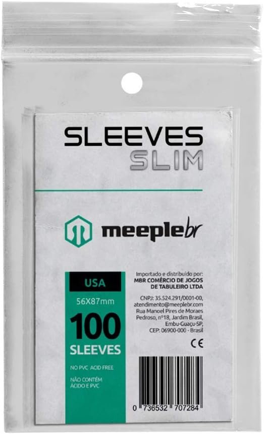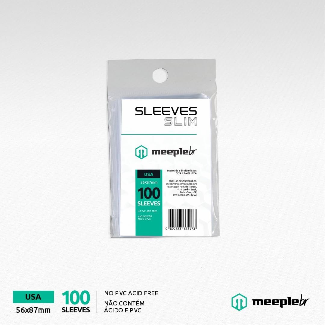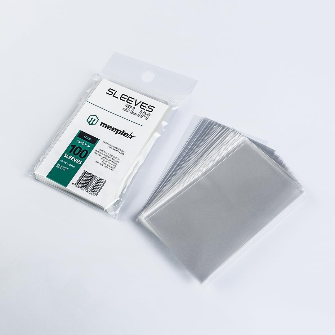 MeepleBR Sleeves SLIM – USA (56x87mm), TCG, Plástico para Proteção de Cartas