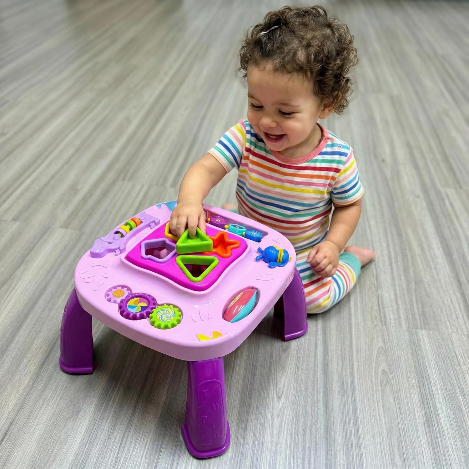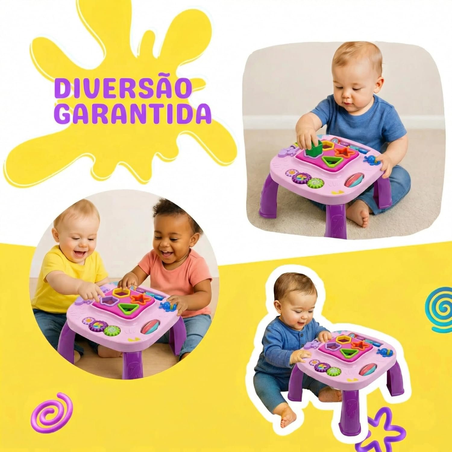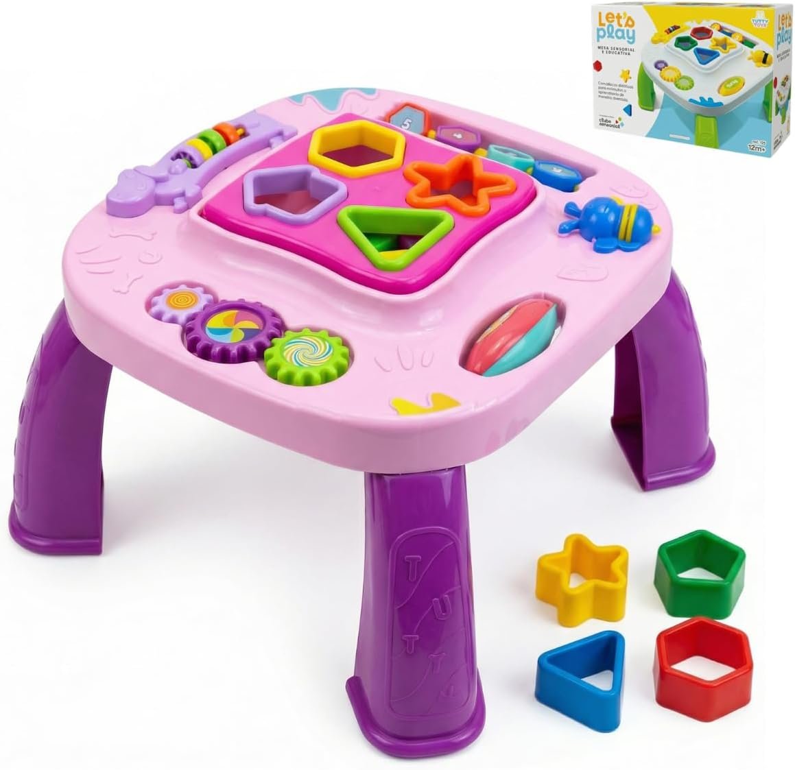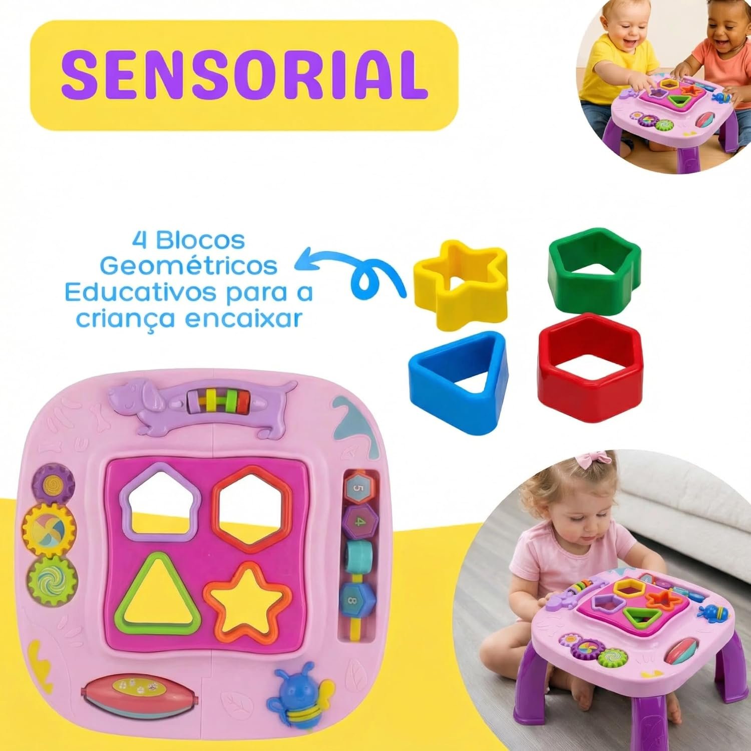 Mesa Infantil Didática Divertida Brinquedo Crianças Educacional Bebê Atividades de Montar Interativa (Rosa)