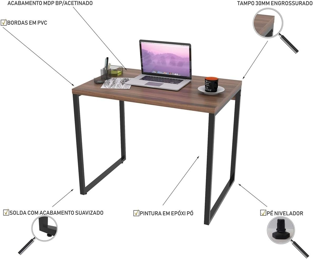 Mesa para Escritório Office Estilo Industrial 0,90m Kuadra Nogal/Est.Preta, Compace