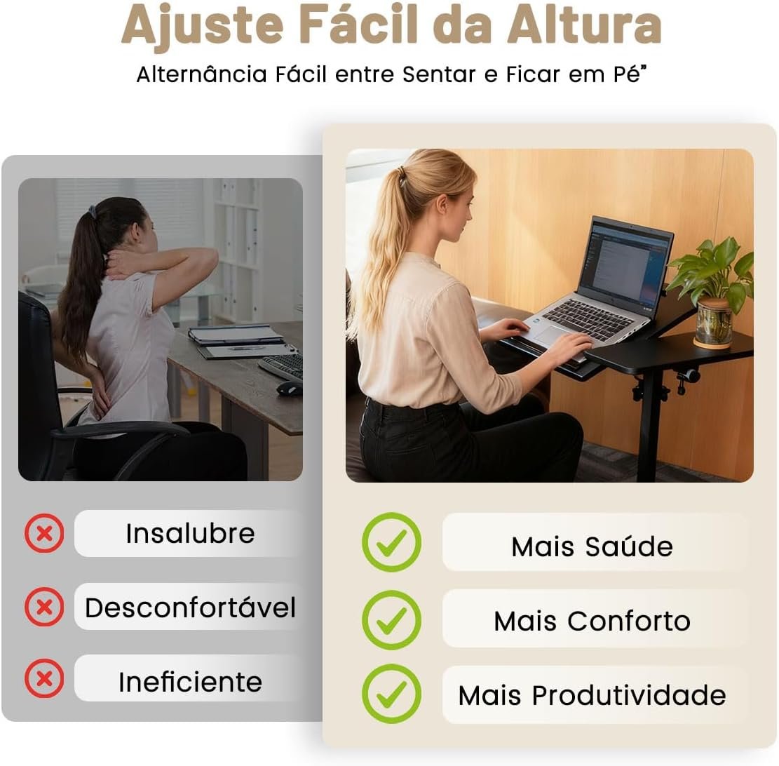 Mesa Portatil Ergonomica Notebook Cama Sofa Altura Reguláve Branco com Ajuste de Altura e Rodas Travas,Mesa para Computador Regulagem Altura (preto, 45 * 50)
