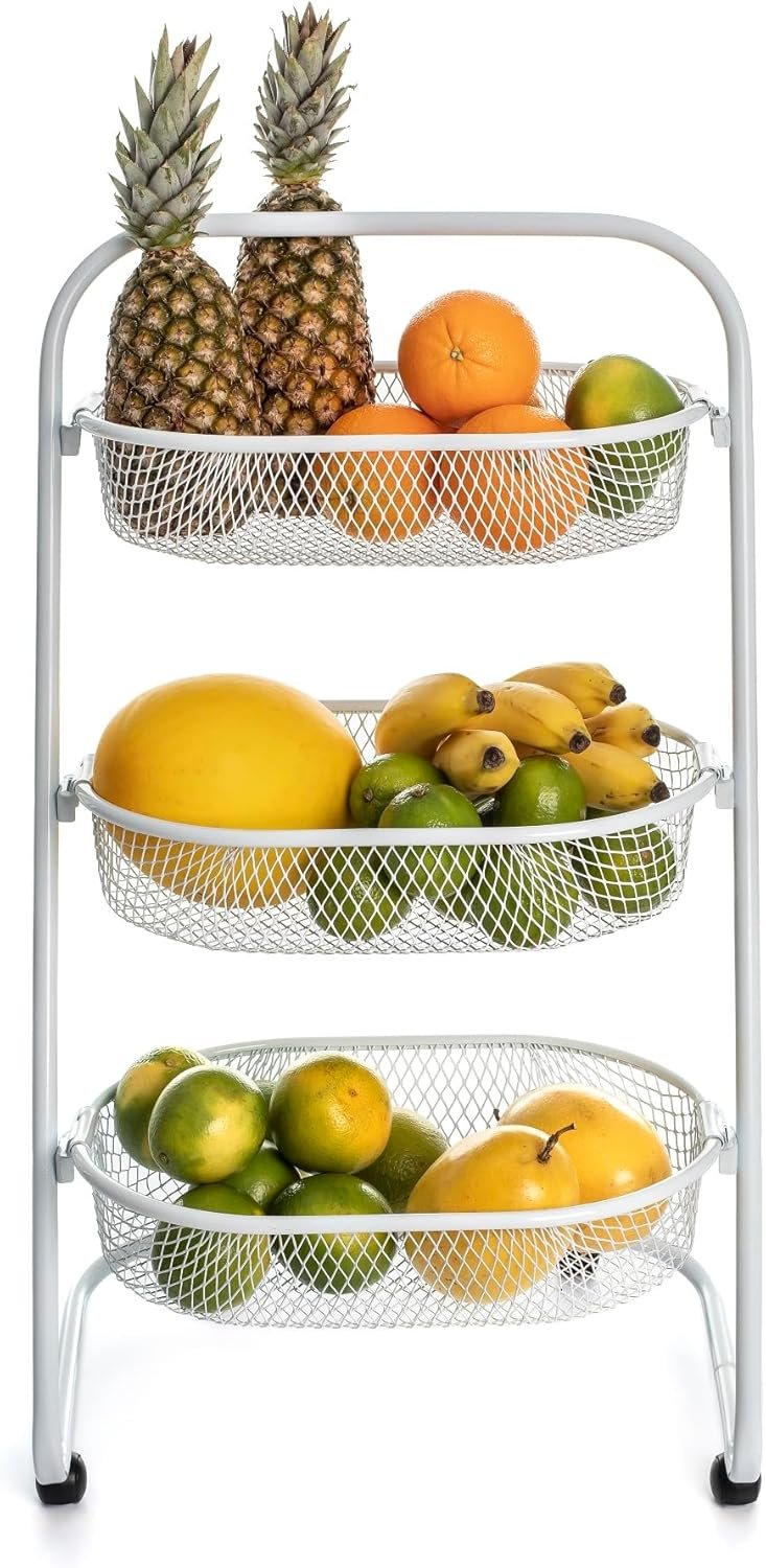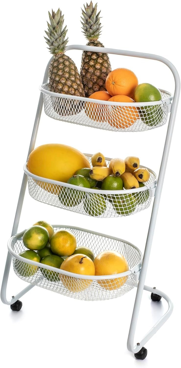 Metaltec Fruteira De Chão Em Aço Resistente Com Rodinhas Multiuso Carrinho Organizador 3 Cestos para Cozinha Reforçado – BrancoMetaltec Fruteira De Chão Em Aço Resistente Com Rodinhas Multiuso Carrinho Organizador 3 Cestos para Cozinha Reforçado – Branco