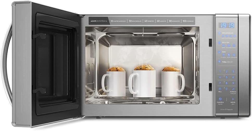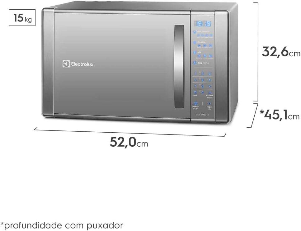 Micro-Ondas ME41X com painel Touch On Glass e Função Grill cor prata
