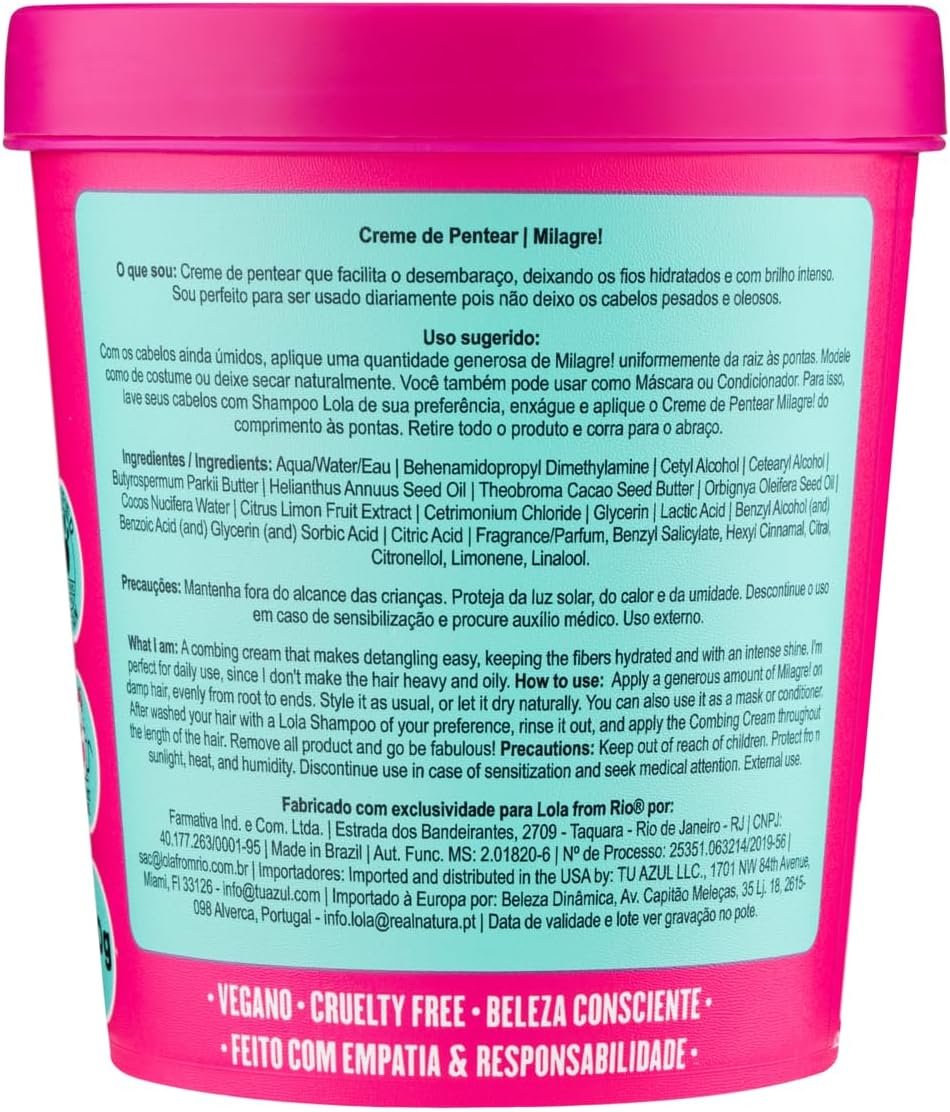 Experimente o Milagre Creme para Pentear 450g da Lola Cosmetics e descubra a solução para cabelos deslumbrantes todos os dias! Enriquecido com ingredientes naturais, este creme proporciona hidratação profunda, maciez incomparável e controle do frizz, deixando seus fios radiantes e sedosos. Transforme seu ritual de cuidados com o cabelo com o Milagre Creme para Pentear da Lola Cosmetics!