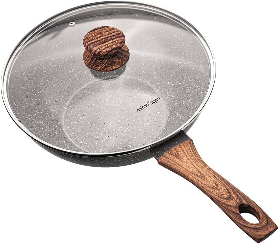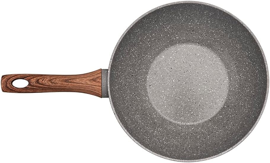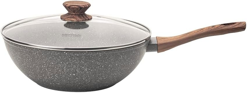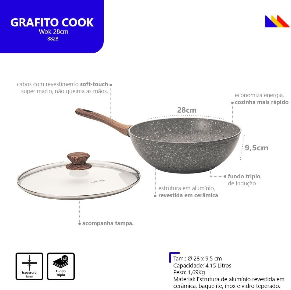 Mimo Style Wok Linha Cook 28cm/4,15L – Estrutura em Alumínio Revestida em Cerâmica, Fundo de Indução. Cabo Soft-Touch, Não Esquenta. Funciona em Fogão a Gás, Elétrico e Indução (Grafito – Cinza)
