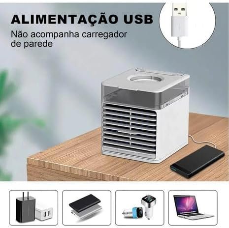 Mini Climatizador de Ar Portátil, Ventilador e Umidificador USB, Branco, Plástico ABS, 3 Velocidades, Timer Automático, 18x10x10 cm, 200ml