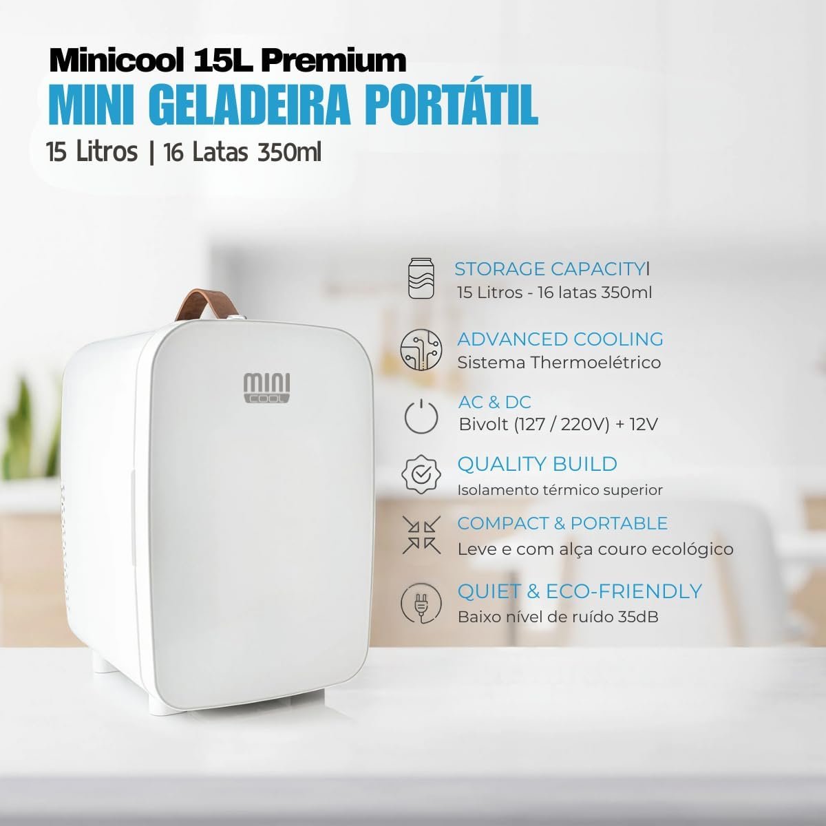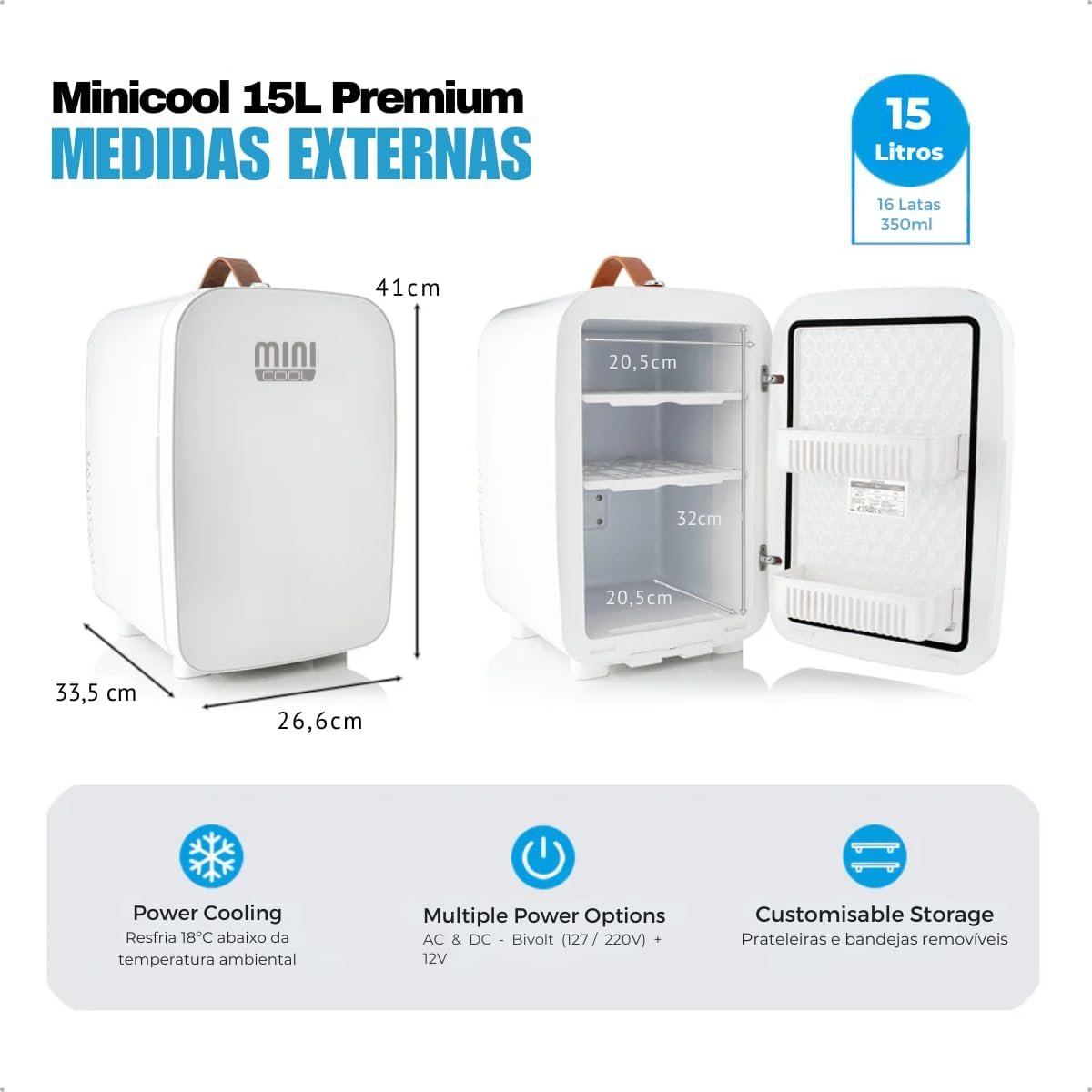 Mini Geladeira 15 litros Premium Branca