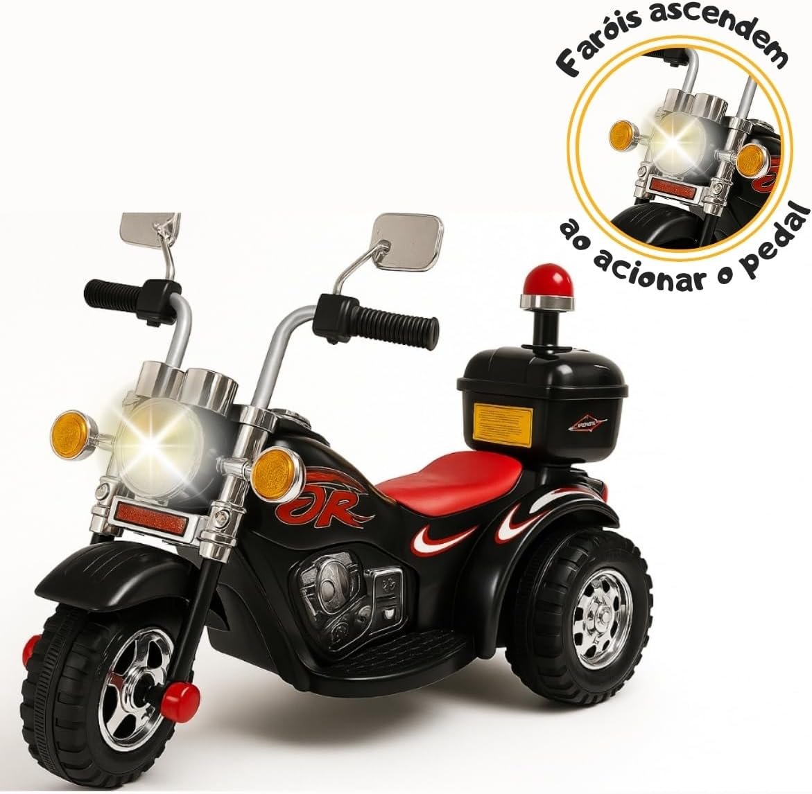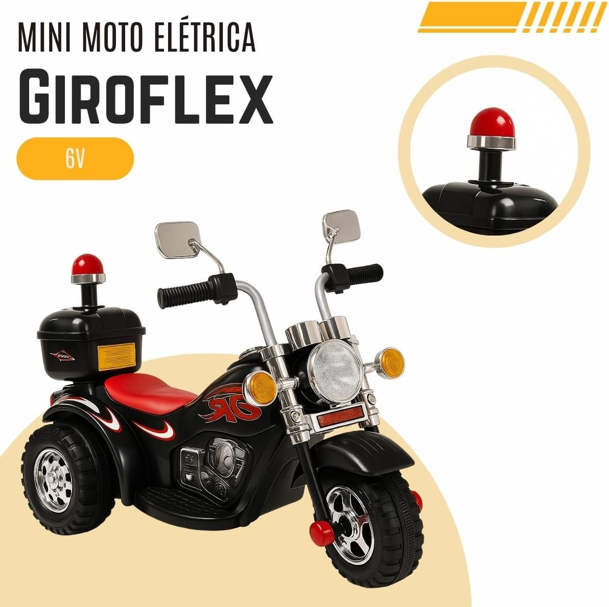 Mini Moto Motocicleta Elétrica Preta Infantil 6V com Som Luz Retrovisor