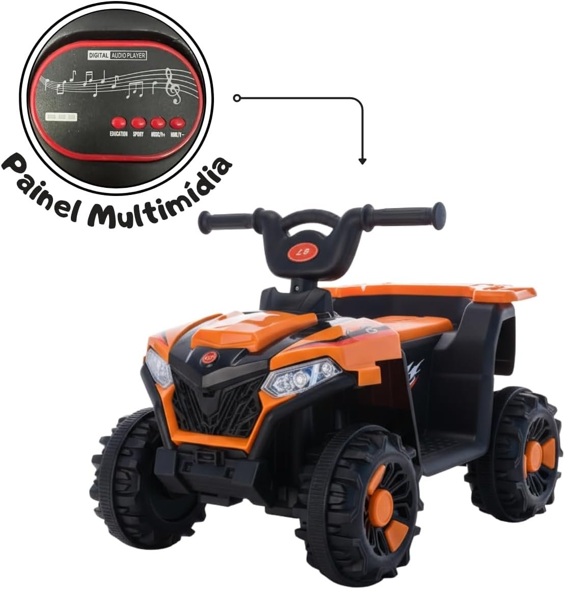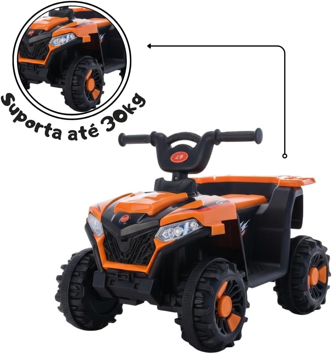 Deixe a diversão das crianças ainda mais emocionante com o Mini Quadriciclo Elétrico Infantil com Bateria 6v. Com luzes e sons de música, este quadriciclo laranja vai garantir horas de entretenimento e alegria para os pequenos aventureiros. Com design seguro e resistente, é ideal para estimular a coordenação motora e o desenvolvimento das crianças. Adquira já e proporcione momentos inesquecíveis para os pequenos!