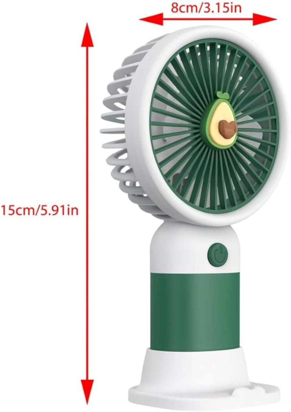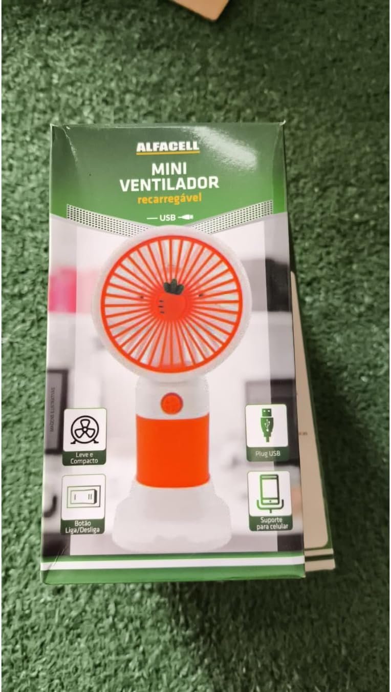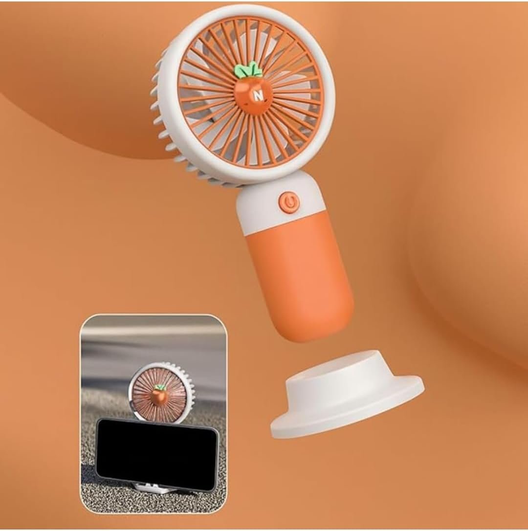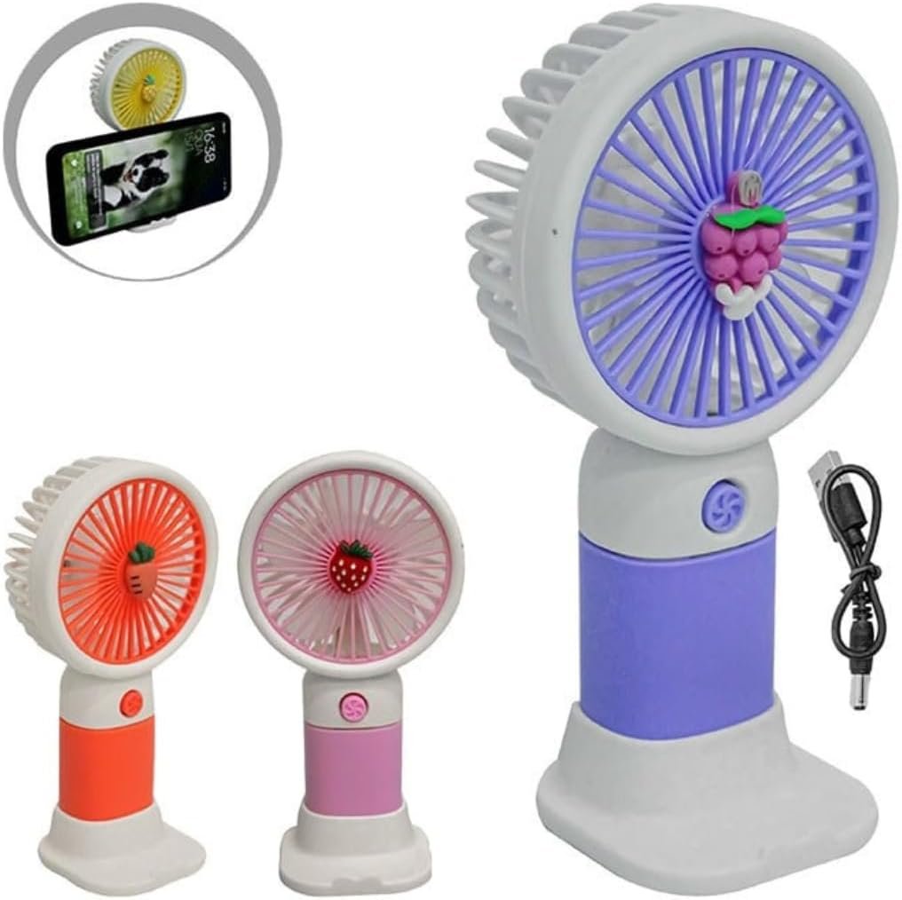 Mini Ventilador Portátil USB Recarregável, Design de Frutas, 3 Velocidades, 15 x 8 cm, com Cabo USB, Base Removível, Bateria Recarregável, para Casa e Escritório