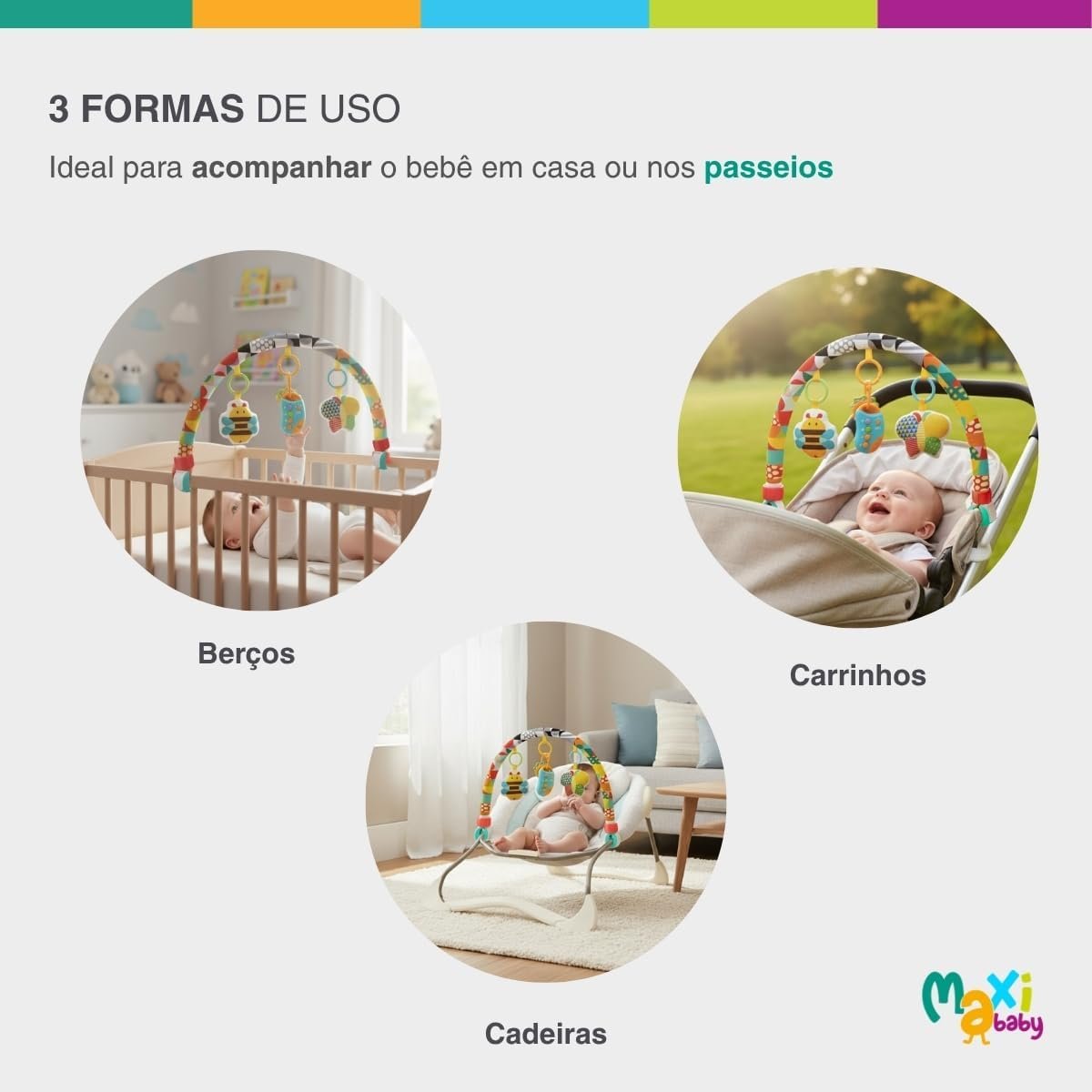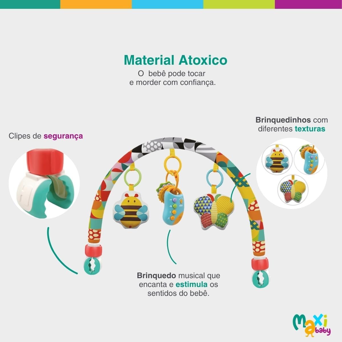 Móbile Arco Musical Bebê Carrinho Berço Let’s Play Maxi Baby