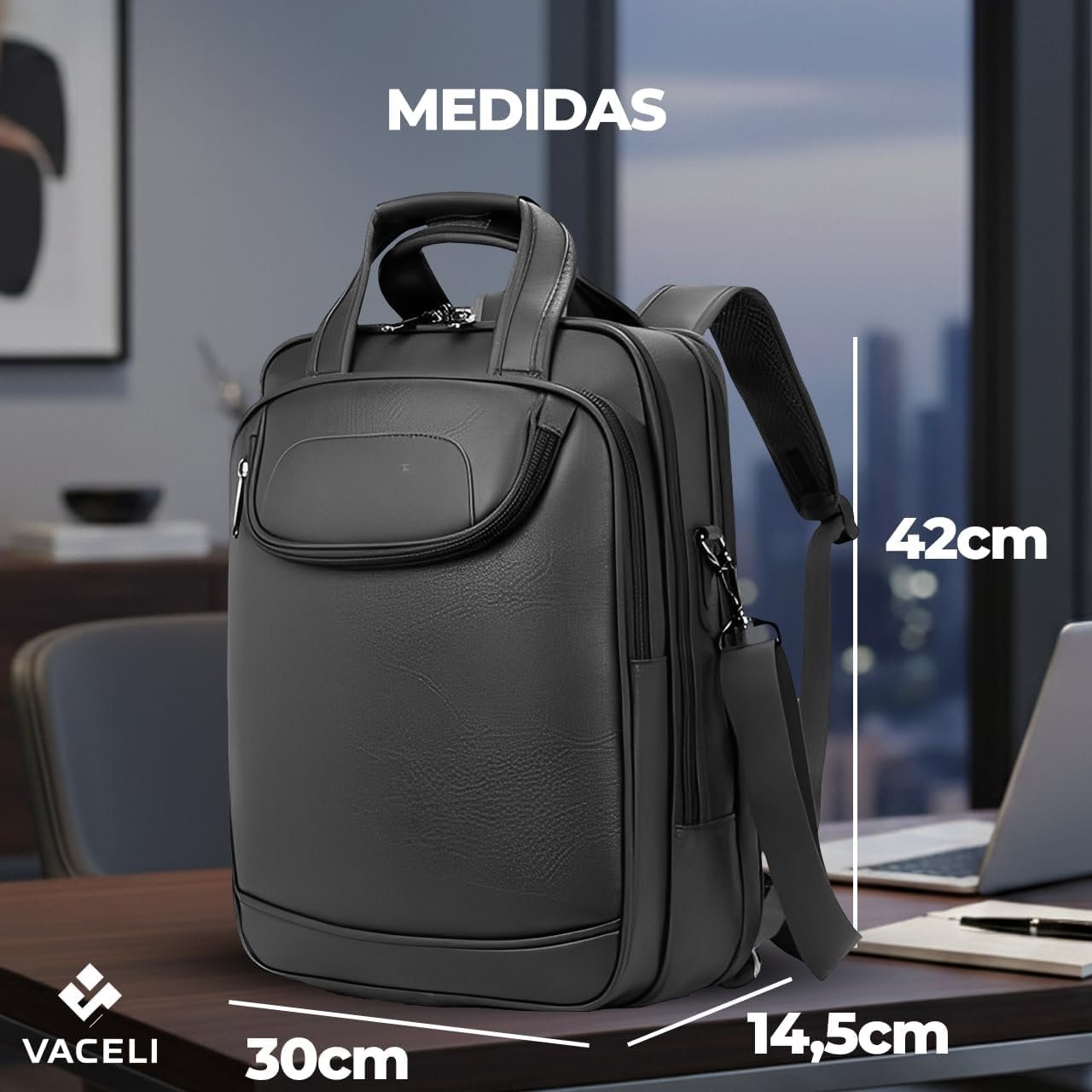 Mochila Couro Reforçada Executiva Grande Mochila para Notebook Trabalho Viagem Escola com Cabo de Aço Impermeável