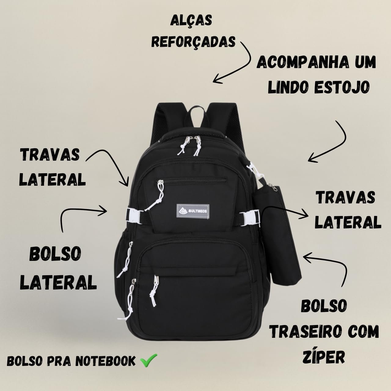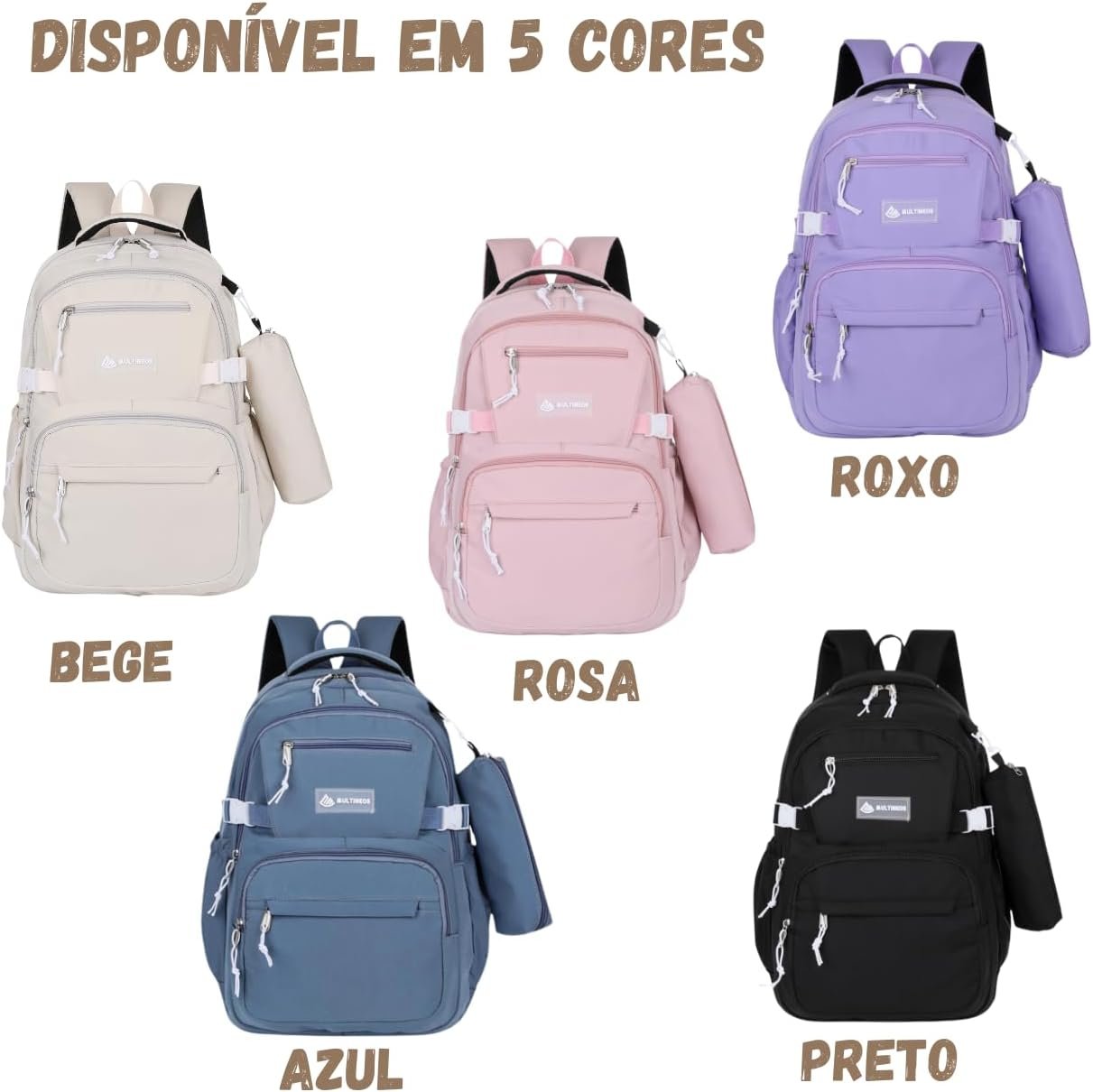Mochila Escolar Grande Impermeável Bolsa Reforçada Com Bolso Antifurto e Divisória Para Notebook Acompanha Estojo Feminina Masculina Trabalho Faculdade Adulto Infantil Juvenil Adolescente