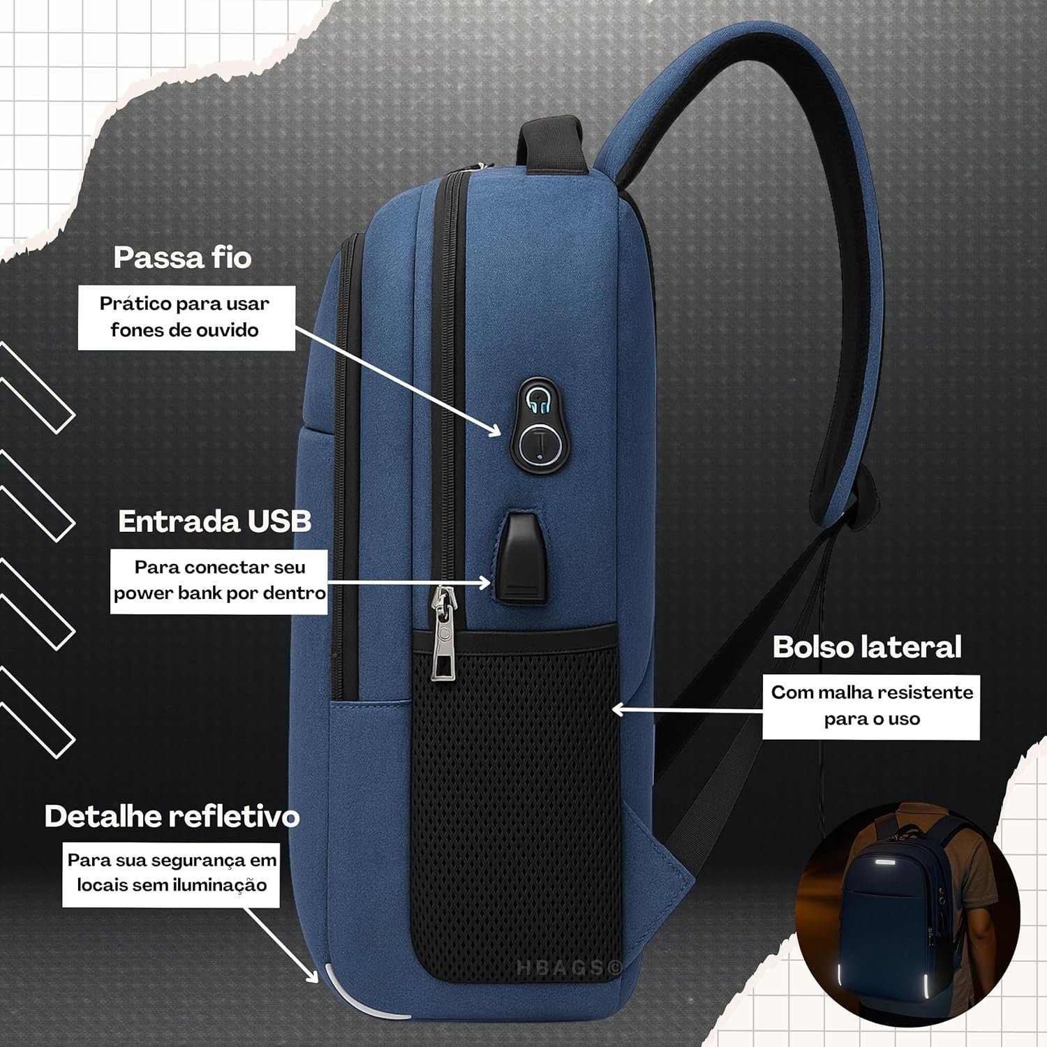 A mochila executiva unissex é perfeita para acompanhar você em todas as suas atividades diárias. Com design moderno e funcional, ela possui entrada USB e passa-fio para fone, facilitando a conexão de seus dispositivos eletrônicos. Seu amplo espaço interno é ideal para guardar seu notebook de até 15.6” com segurança e organização.