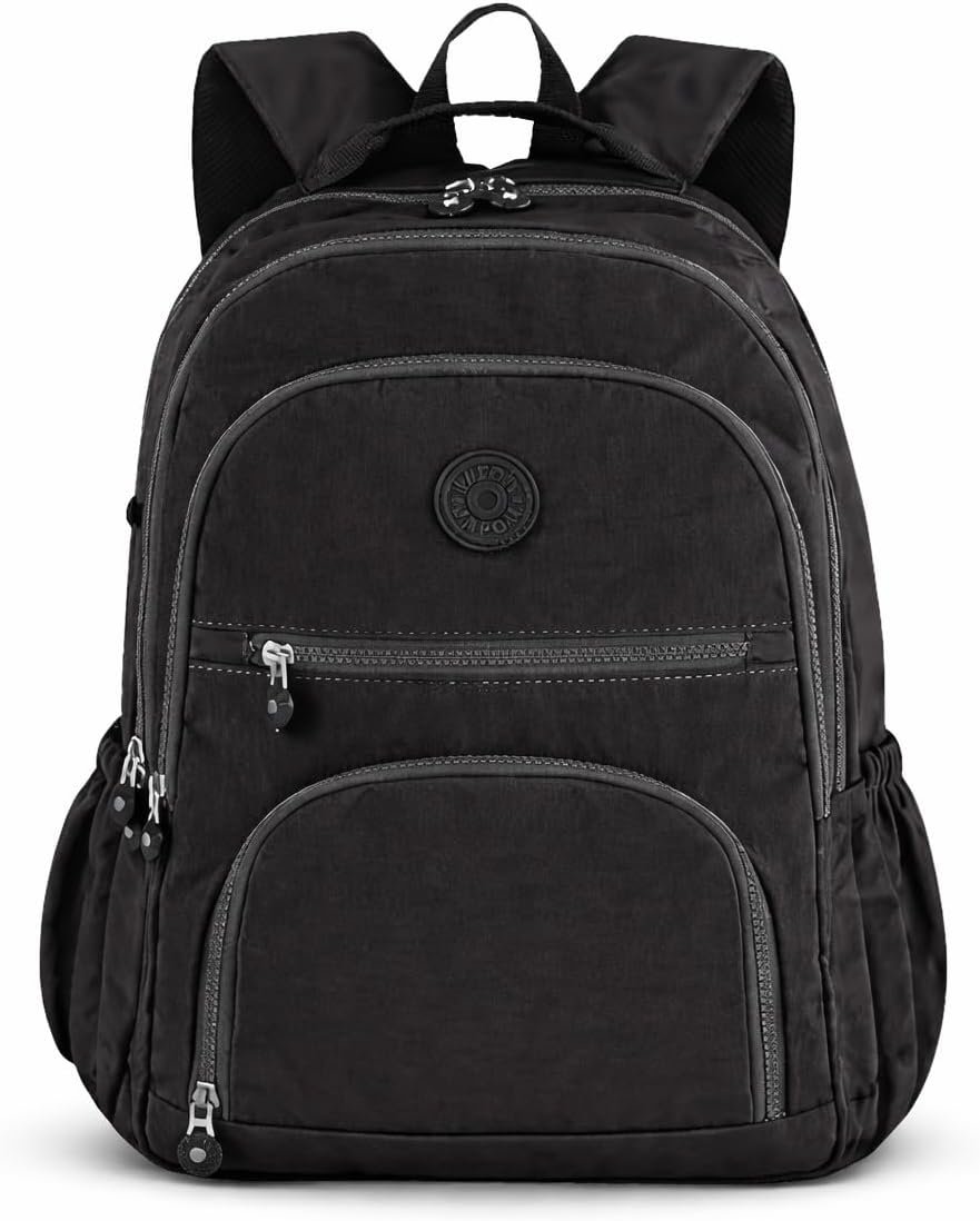 Mochila Grande 30L Nylon Impermeável Feminina Masculina Escolar Juvenil Notebook 15″ — Mochila Preta Resistente com Múltiplos Bolsos, Leve, Casual e Reforçada para Escola e Viagens