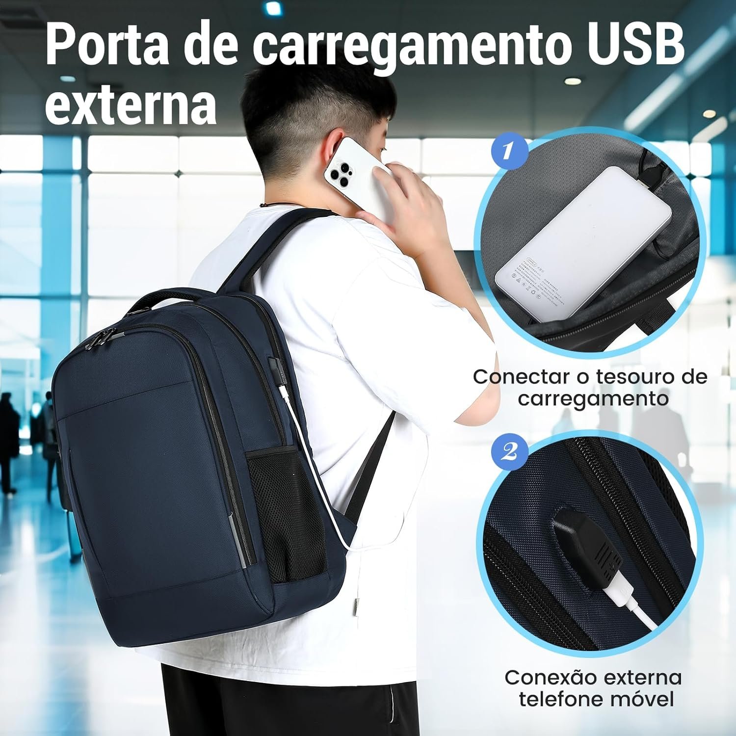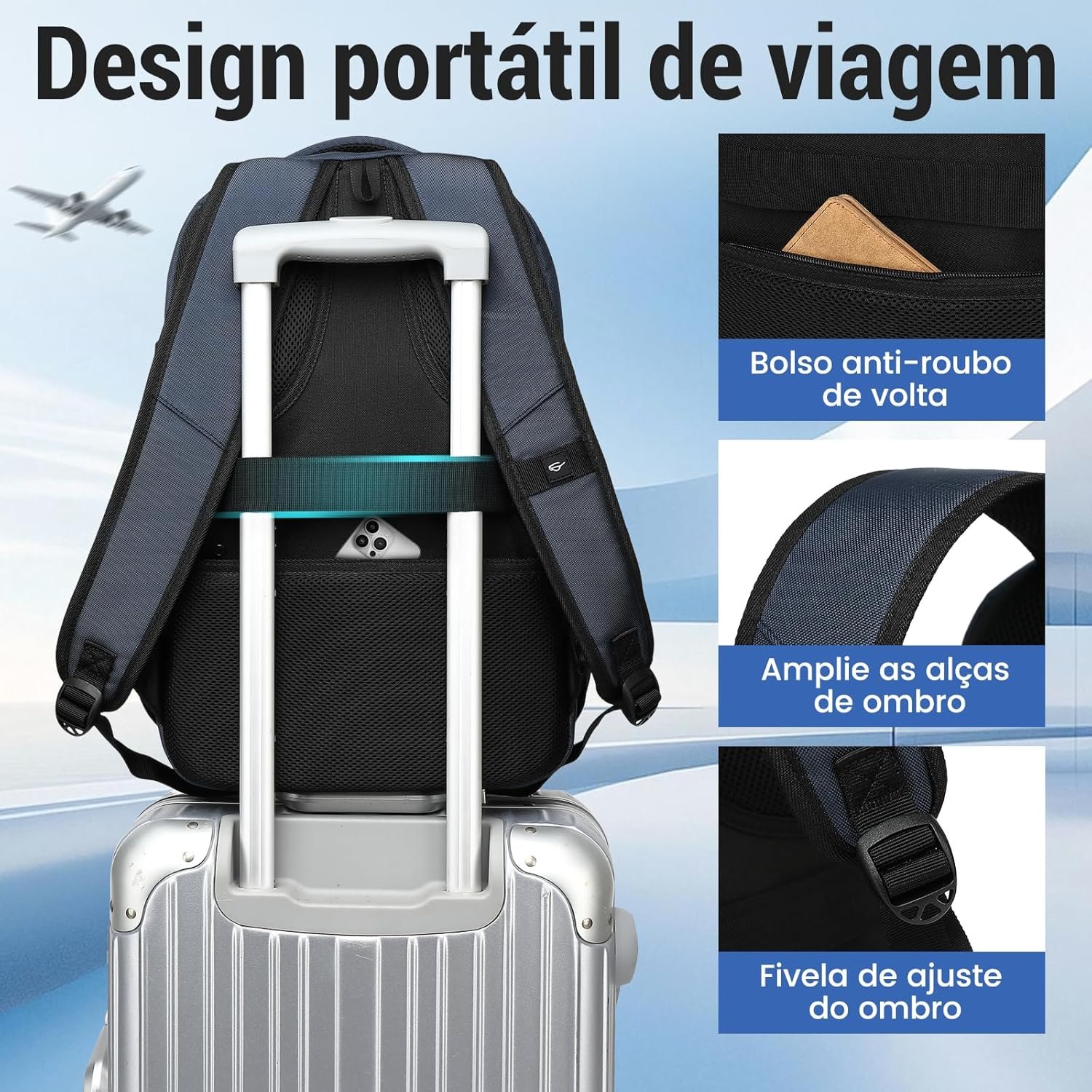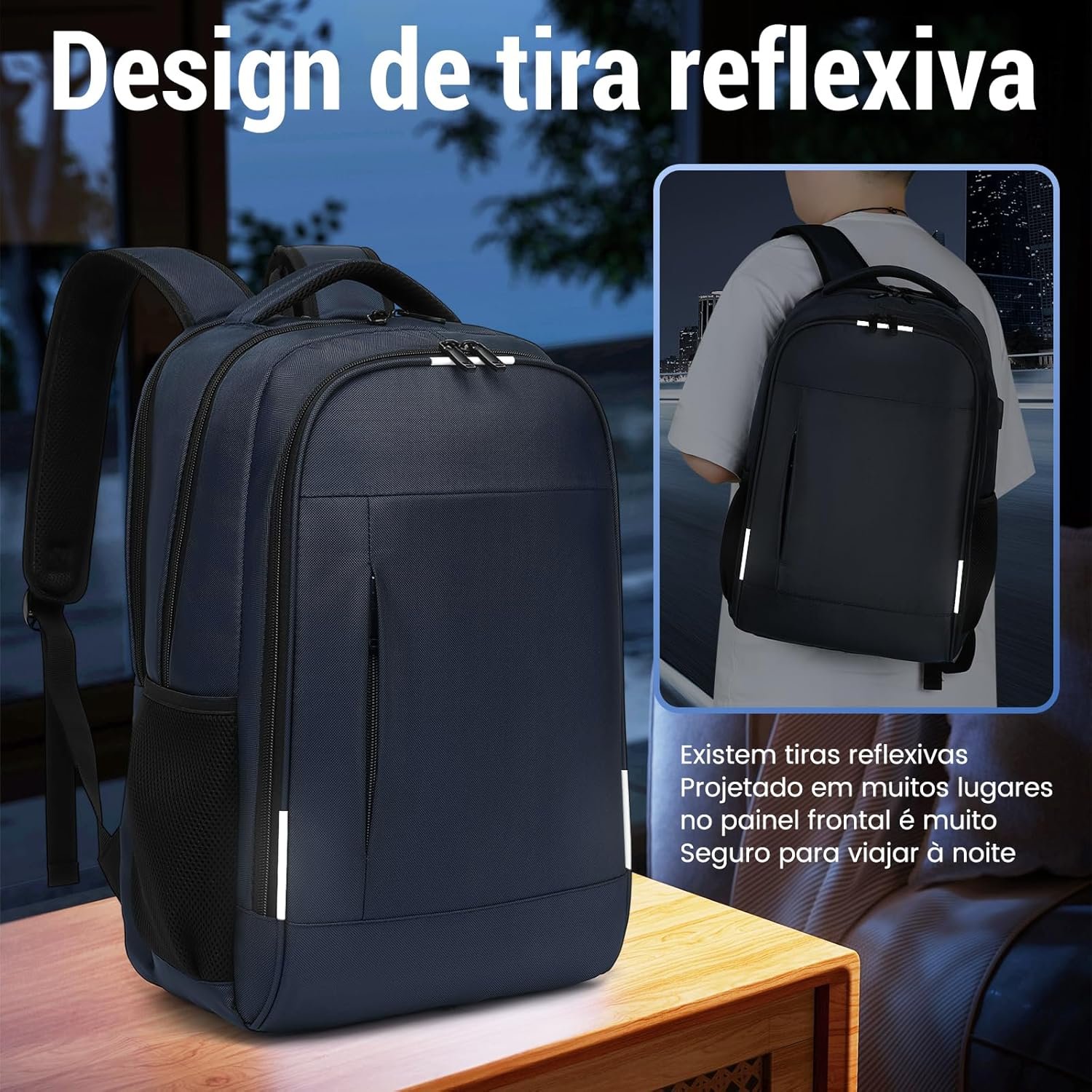 - Mochila executiva antifurto, garantindo a segurança dos seus pertences