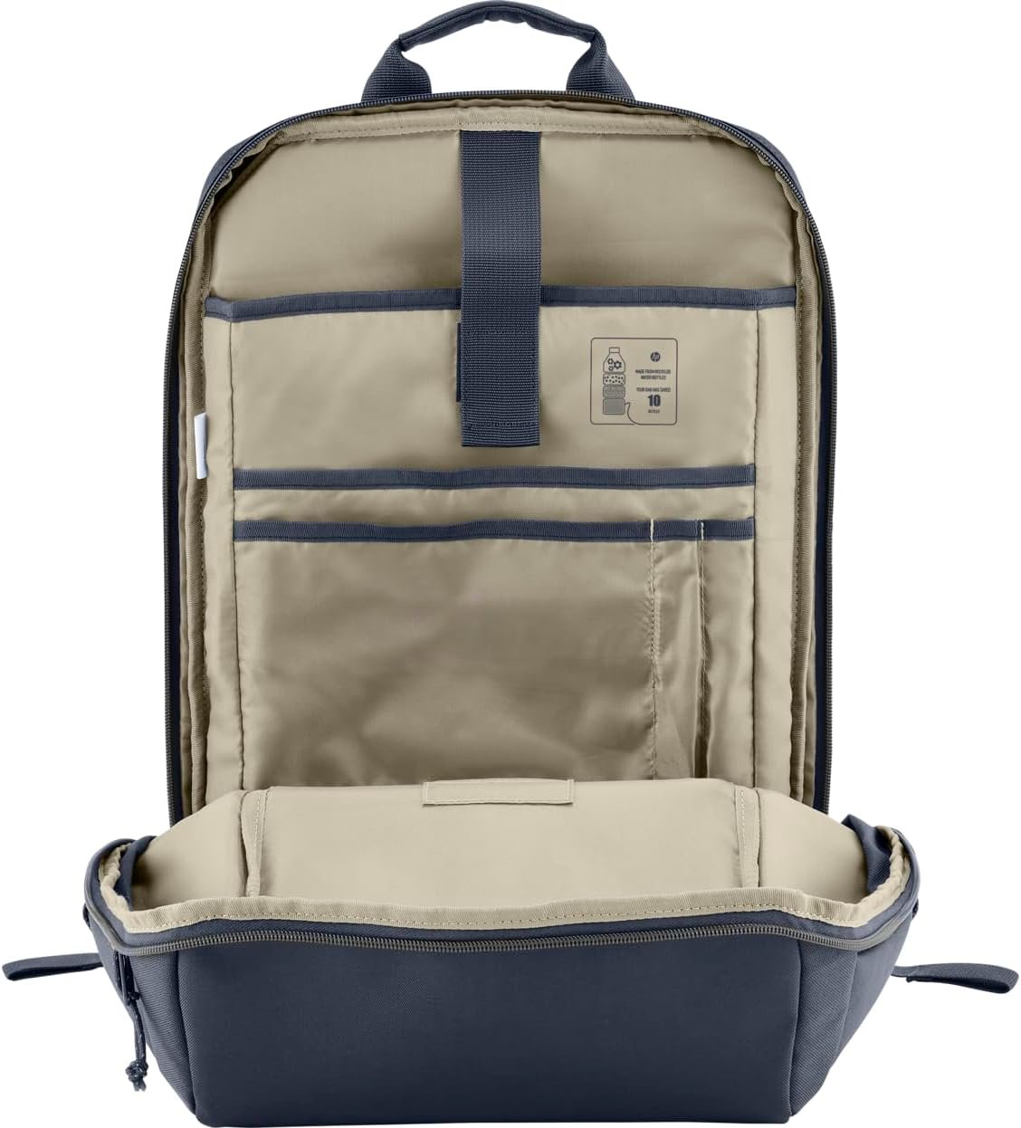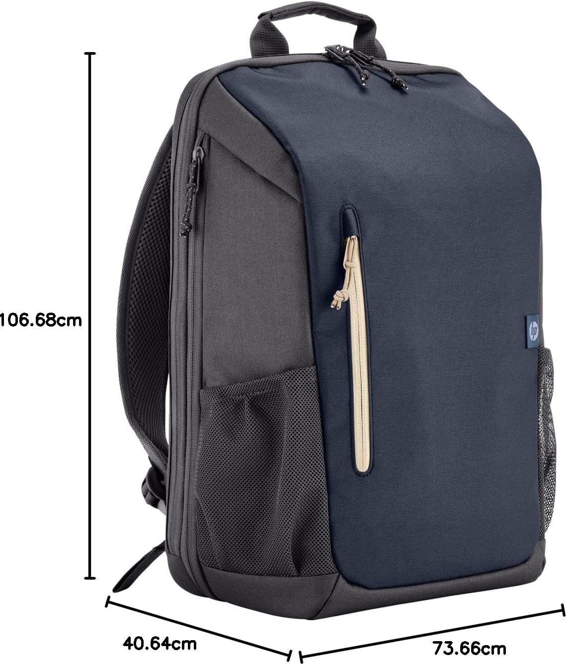 Mochila HP Travel – para Notebook de até 15,6 Polegadas, Multi-compartimentos, Expansível até 21L, com Alças Acolchoadas, Exterior Feito de Materiais Reciclados, Azul (6B8U7AA)